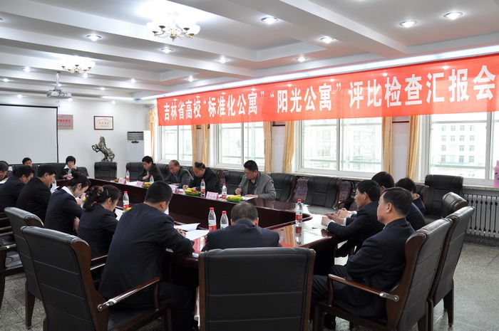 按照 “吉林省高校公寓管理专业委员会”工作安排,首先在三楼会议室召开了我院“标准化公寓”、“阳光公寓”建设情况汇报会,会前党委书记于俊秋看望了各位专家,会上主管领导、纪委书记王玉文致欢迎词,学生处长刘树全就我院公寓基础设施、管理制度、队伍建设、公寓文化建设以及新校区公寓建设等情况做了专题汇报。
