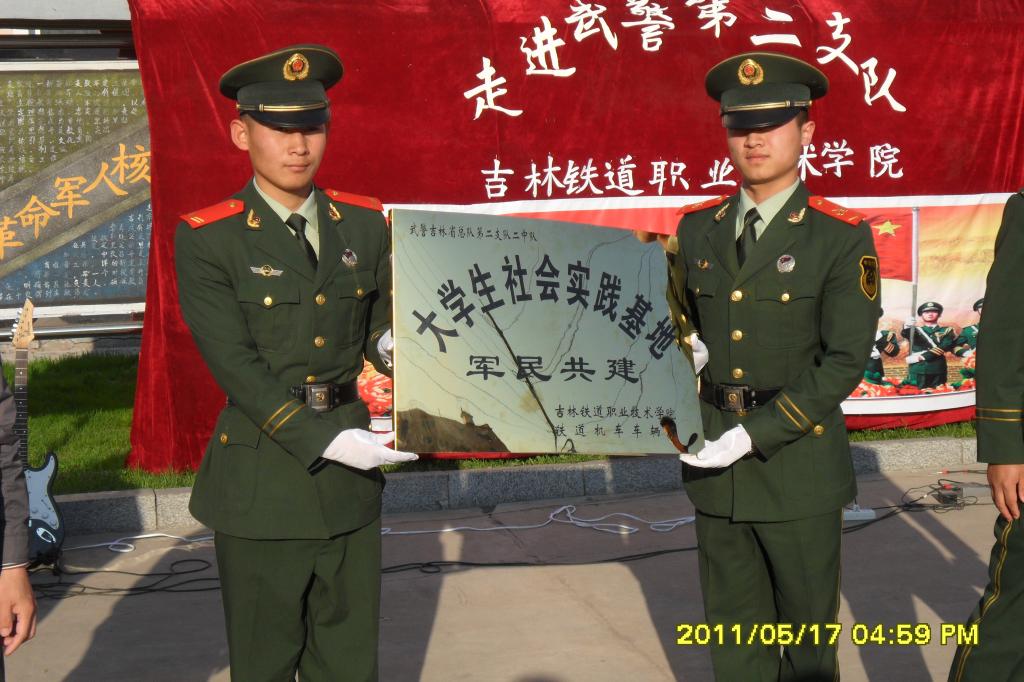 在此次活动中,还进行了机车车辆系与武警第二支队二中队建立“大学生社会实践基地”的揭匾仪式,使得我院与武警第二支队二中队正式确立了军民共建关系。
