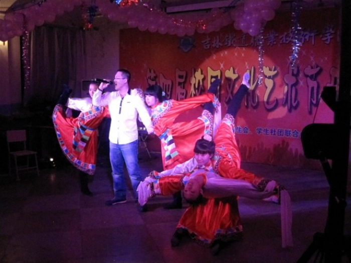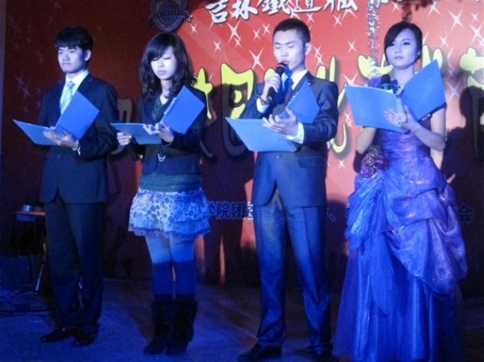 4月1日晚5:40,由院团委主办,院学生会、学生社团联合会承办的学院第四届校园文化艺术节开幕式在西校区图书馆隆重举行。出席本次开幕式的领导和老师有:铁道运输系党总支书记董丽、铁道工程系党总支书记马建华、铁道机车车辆系党总支书记张向力、院团委书记盛继前、学生处副处长韩兵兵、铁道工程系团委书记张鑫、铁道机车车辆系团委书记高丽娴、电气工程系团委书记于鹏、汽车工程系团委书记刘佳佳、计算机科学技术系团委书记宋洋、经济管理系团委书记于威、学生处李爽老师、铁道运输系辅导员许铁英老师、铁道运输系辅导员李佰玲老师、铁道运输系辅导员孟家辉老师。