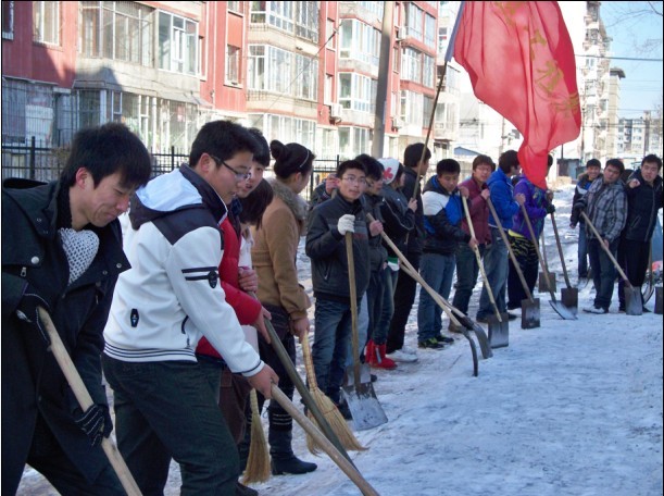 3月4日下午,铁道工程系的道桥工程技术专业3101、3102班学生在雷锋精神的感召下,以宣传雷锋精神、服务大众为目的,清理了西校区球场。同时,系团委副书记宋金秋同学带领三十多名志愿者来到了民主街道铁安里小区清理积雪,大家顶着寒风、热火朝天的干着,没有任何的抱怨和退缩,全面完成了任务。5日上午,铁道工程系辅导员吴穹老师又带领二十多名学生来到永强小区公交站点进行“学雷锋”城市文明宣传活动。