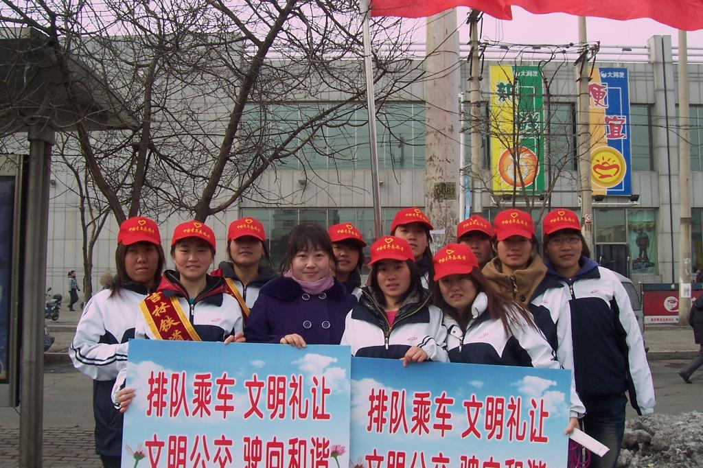 3月5日,按学院团委部署,在系辅导员高老师的带领下,系10名志愿者们来到46路公交车花园北路(大润发超市)站点,进行了倡导“排队乘车 文明礼让”活动。同学们积极维护车站秩序,还不时协助乘客上下车,给过往市民散发争做文明市民倡议书。本次活动,不仅增强了志愿者们的工作能力,更唤醒了作为一名青年志愿者的责任心。