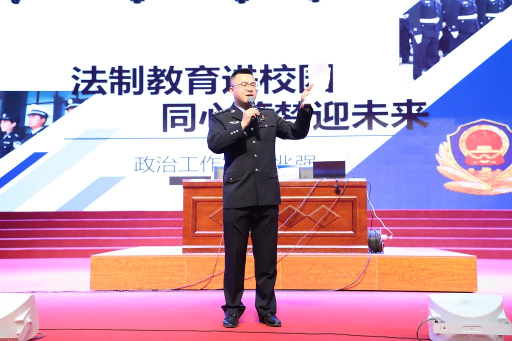 在“4.15”全民国家安全教育日即将到来之际,为进一步强化师生的法律意识,提高法治素养,按照省教育厅相关文件要求和学校“4.15”全民国家安全教育活动方案安排,4月10日下午,学校邀请驻校法治辅导员、永吉县公安局政治工作室刘兆强警官,在我校大学生活动中心进行了以“法治教育进校园·同心筑梦迎未来”为题的专题讲座。永吉县公安局网安大队、永吉经济开发区派出所相关人员,学生工作处处长周环宇、副处长李爽,安全保卫处副处长张强、治安科科长吴宇飞,各学院党总支副书记、学办主任、辅导员和学生代表参加本次讲座,讲座由周环宇主持。
