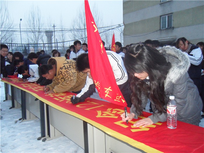 为了纪念一二九运动七十五周年,传承爱国主义优良传统,铭记历史,勇担重任,汽车工程系于12月9日举行了传递一二九精神接力和签字活动。 下午3点30分,虽然天气很冷,可同学们都穿着校服,整齐的站在汽车工程系基地门前等待着接力赛的开始。这次接力赛的接力棒是由各班自己设计的:电子3101班在红旗上印写了“纪念一二九,星火传递爱国情,强身卫国我争先。”;制造3102则在校服上写下了“青年强则国强,青年独立则国独立”;制造3010班自己制作了一个火炬象征着一二九运动精神。接力赛开始后,同学们便把代表着一二九运动精神的接力棒高高举起,向前进发,通过同学们的手一棒一棒的传递下去。为了更好的配合这次传递活动,广播站宣读了我系起草的“不忘历史,勇担重担”的倡议书,同时播放了歌曲“五星红旗”,使整个校园沉浸在纪念一二九运动的氛围之中。 接力结束之后,我系又组织了师生签字仪式。在场的师生在印有“牢记历史,永担重任”的条幅上签上了自己的名字。 通过这次活动,全体同学们回忆了那段激动人心的历史,传承了爱国主义精神,明确了自己肩负的历史使命,树立了为祖国富强努力奋斗的远大目标。