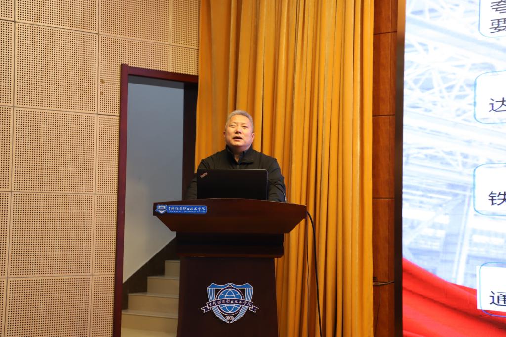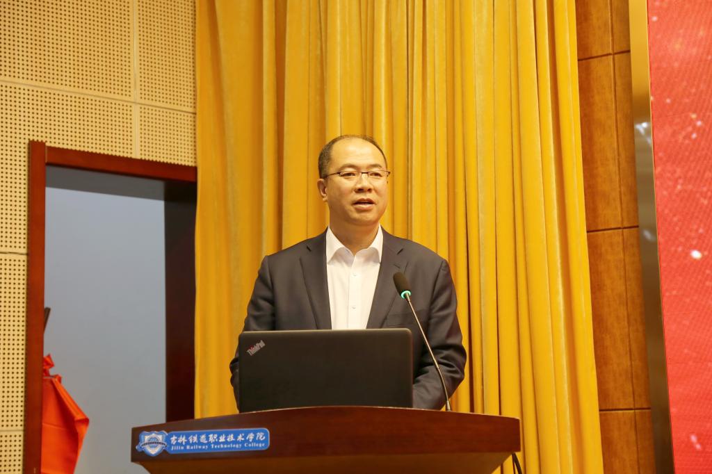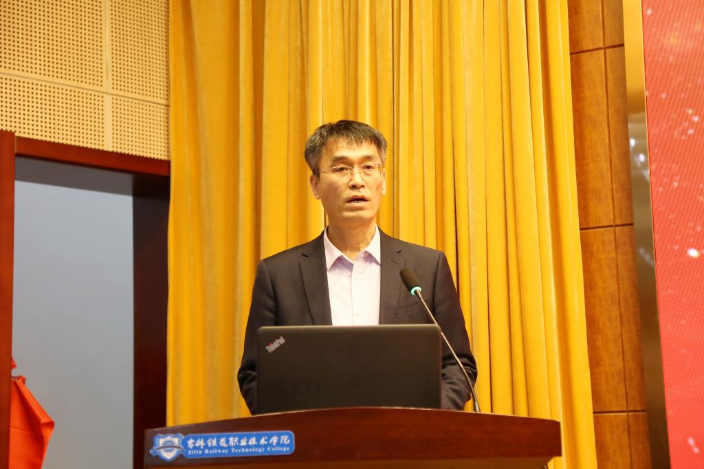 会上,曹炳志致辞,他代表学校向莅临本次会议的各位领导、专家及教师表示热烈的欢迎。他简要介绍了吉林省铁道职业技术教育科研创新示范基地建设情况和取得主要成果。他强调,基地的获批是教育厅、教育科学院、教育科学研究领导小组对学校的信任和鼓舞,学校和基地将继续深入落实新版《职业教育法》、落实两办《关于深化现代职业教育体系建设改革的意见》,加快铁道职业技术教育研究,为加快吉林特色现代职业教育体系建设,服务吉林省域轨道交通建设与发展、吉林省职业本科建设和发展,实现职教兴省、高教强省、职教惠民,发挥更大作用;学校高度重视教育科研工作,迁入新校区之后,年年举办以“新阶段、新担当、新作为、新发展”为主要内容,以提升教科研水平为重要目标之一的“四新职教大讲堂”,已经主办11期;学校高度重视教学科研内涵建设与发展,“铁路职教·科教融汇”学术研讨会暨吉林铁道职业技术学院“新阶段、新担当、新作为、新发展”大讲堂,旨在为吉林省高教研究基地提供高水平的交流平台,推动学校教育科研工作迈上新台阶,为建设“教育强省”提供智力支撑。