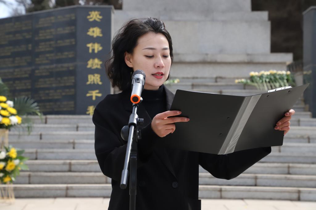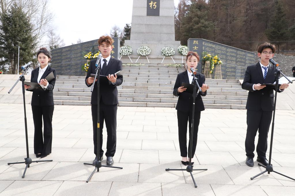 学生党员、青马班学员代表张城玮表达了青年学生一代要以烈士们为榜样,坚定理想信念,牢记使命担当,早日成为国家栋梁的坚定信念。