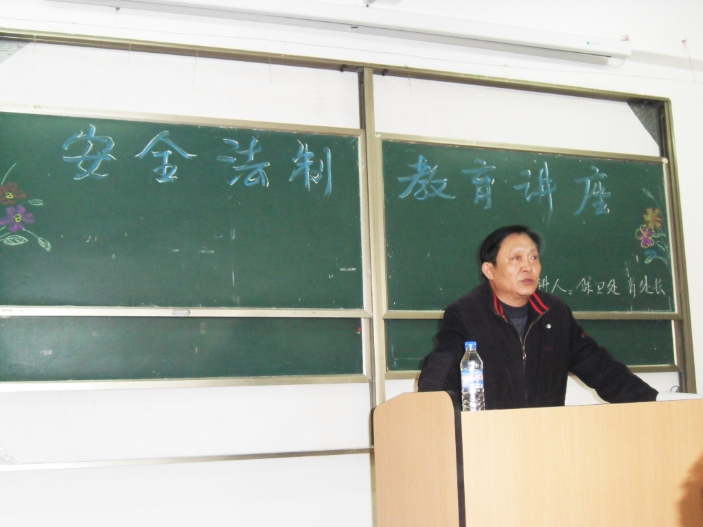 为进一步增强同学们的安全知识, 牢固树立“安全责任重于泰山、维护稳定压倒一切”的思想观念,做到安全警钟常鸣,实现我院安全工作“六无”目标。4月29日中午,我系邀请保卫处肖文忠副处长在东校区西院三教602室为全体学生做了一场精彩的安全法制教育知识讲座。系党总支书记马立滨、系团委书记盛继前、辅导员宋洋以及全系12个班的200余名学生参加并聆听了讲座。讲座由马书记主持。