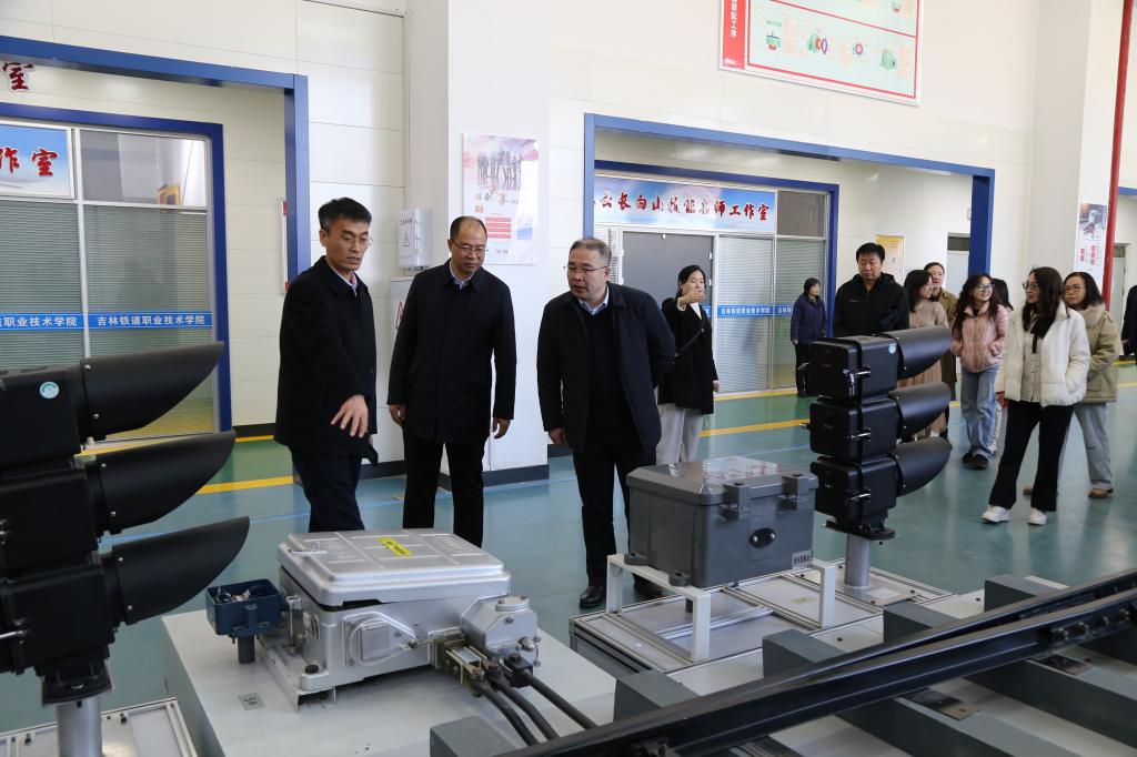 刘忠巍一行先后参观了火车头文化广场、大学生活动中心、大学生公寓“一站式”学生社区、教学融合指挥中心、吉林铁路博物馆、铁道信号自动控制实践教学区、高速动车组实践教学区、铁道机车车辆检修实验研究中心、铁道综合实践教学基地、动车模拟驾驶实训室等地。刘忠巍一行对我校党建、人事、财务、学生、教务、资产、后勤管理等方面所取得的成绩给予了高度评价,并表示将借鉴我校的先进经验,推动自身学校的改革发展。