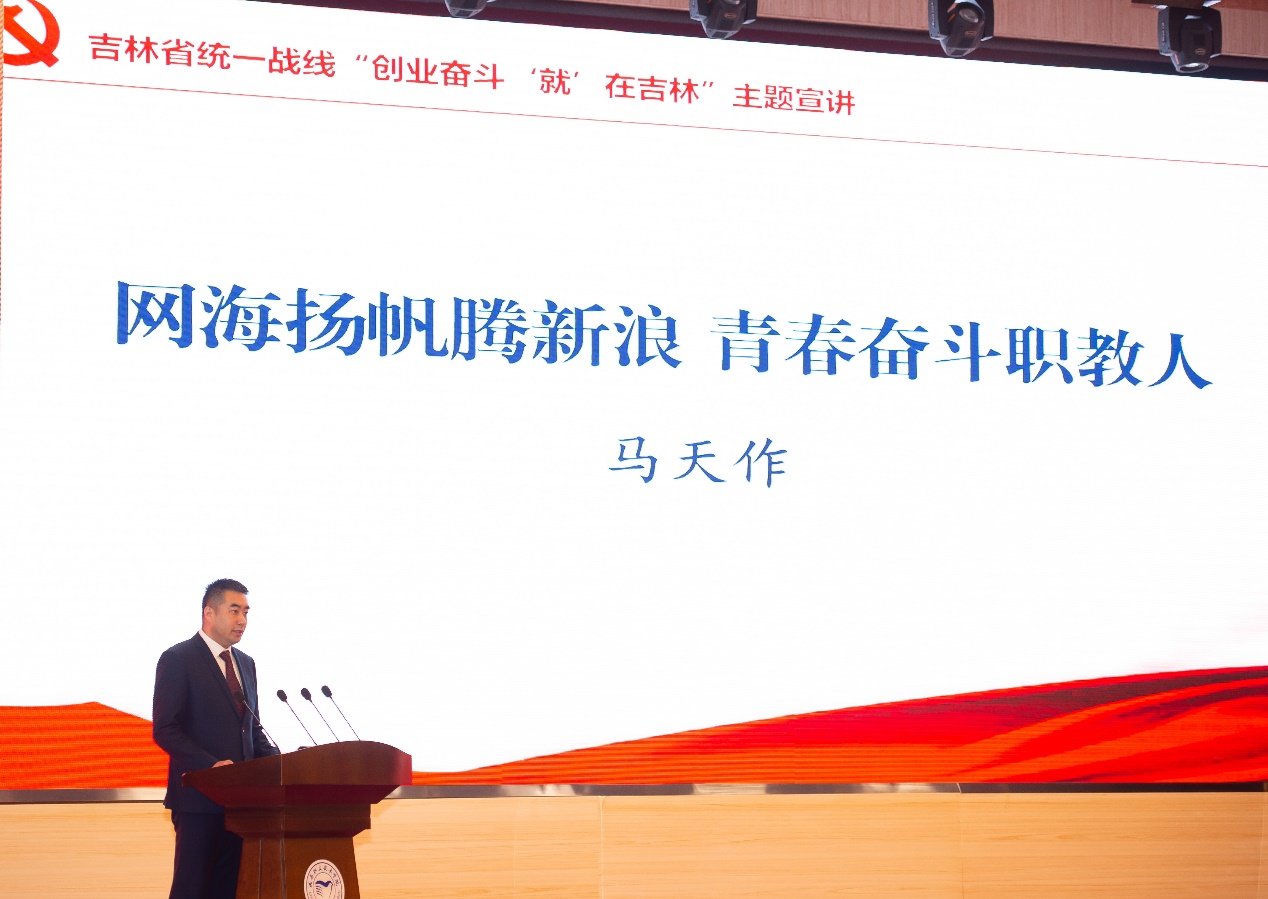 宣讲报告会是吉林省统一战线贯彻落实省委十二届四次全会精神和“创业有你,‘就’在吉林;奋斗有我,‘就’在吉林”号召,发挥人才荟萃优势,搭建留才聚才、思政引领平台,深入实施吉善同心工程、助力吉林全面振兴的重要举措,为广大职业院校学子在吉就业创业提供更宽的视角和更多的参考。