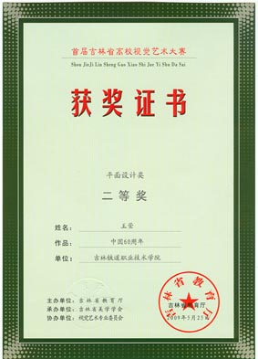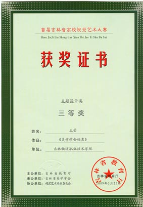 我系艺术设计3072班王莹同学的作品“中国60周年”获得平面设计类二等奖、“吉林省美学学会标志”获主题设计类三等奖,艺术设计3071班刘阳同学的作品“吉林吉粮房地产有限公司VI系统”获得主题设计类三等奖。另外一并报送的运营3072班赵立君同学的作品“初冬小镇”获摄影类二等奖。