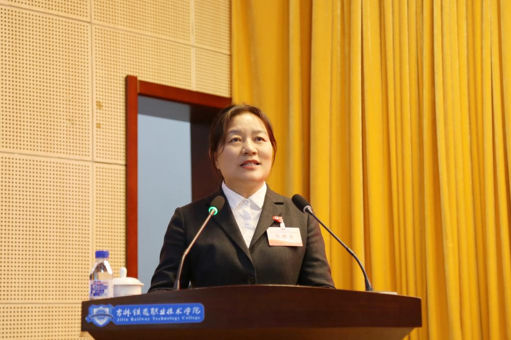 曹炳志向大会作了题为《攻坚克难 勇毅向前 为创建吉林铁道职业技术大学而团结奋斗》的工作报告,回顾了学校2023年取得的成绩,对2024年的工作做出部署。他指出,要把握住千载难逢的“创本争高”机遇,高质量完成创建职业本科大学、双高计划验收、新一轮双高计划遴选三大重点任务,全力推进学校高质量发展。要在培育发展新质生产力、推进中国式现代化新征程中谋篇布局,全面贯彻党的教育方针,落实立德树人根本任务,以“创本争高”为抓手,深入开展“六铁一全”特质学生培养,奋力谱写学校高质量发展新篇章,助力吉林全面振兴率先实现新突破。他从坚定不移用习近平新时代中国特色社会主义思想凝心铸魂;坚持和加强党对学校工作的全面领导;锚定“创本争高”,全力推进学校高质量发展;高质量开展办学条件达标工程,全面提升关键办学能力;高水平实施立德树人质量提升行动,深入开展“六铁一全”特质学生培养;全面增强服务经济社会发展能力;全面做好招生与就业工作;全面深化教育开放合作;推进学校治理体系和治理能力现代化建设;全面创建平安稳定校园;持续打造幸福铁院等十一个方面对2024年重点工作进行安排部署。