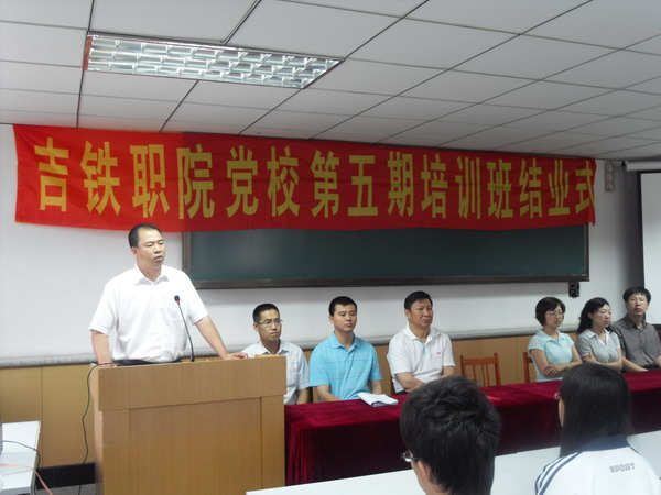 学院党校副校长:党委副书记曹炳志同志、纪委书记王玉文同志;学院党校校务委员:党委组织部部长杨新同志、学生工作部部长李欣同志、团委书记周环宇同志;学院党校办公室成员:铁道运输系党总支书记董丽同志、铁道工程系党总支书记马建华同志、铁道机车车辆系党总支书记李原福同志,以及各系团委书记出席了结业式。239名党校结业学员参加了结业式。结业式由学院团委书记周环宇同志主持。