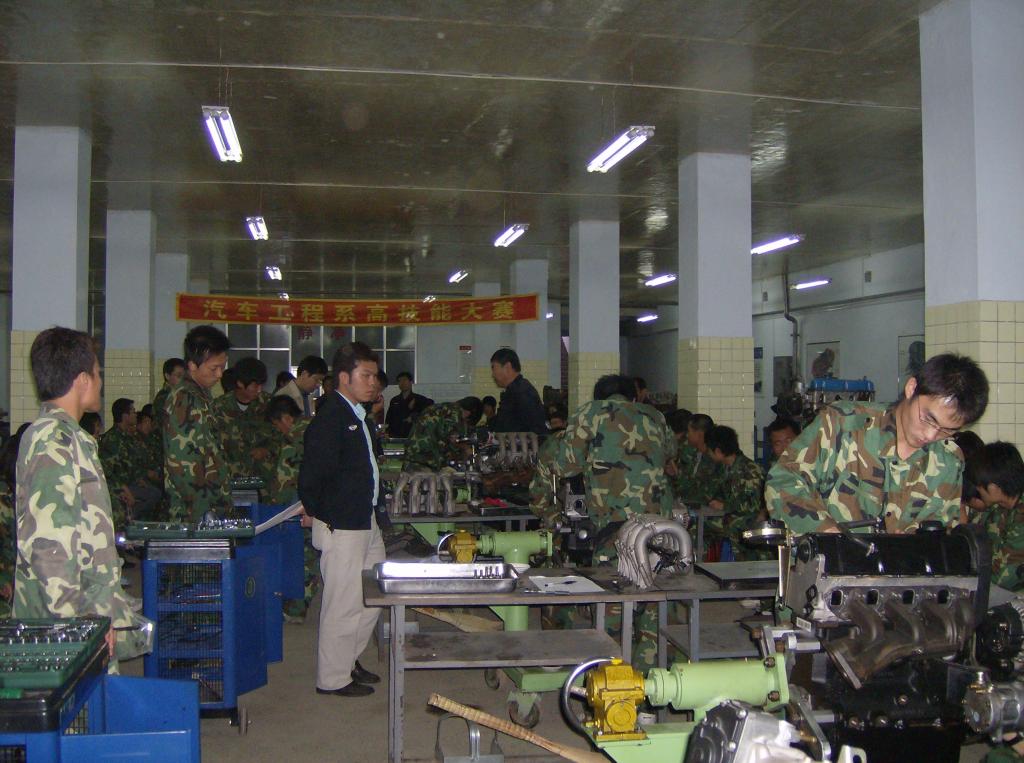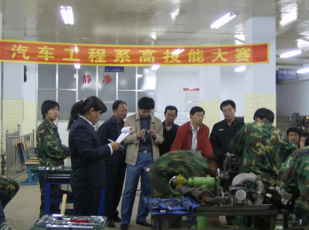 6月4日下午,汽车系团委与工会联合举行2009年度学生汽车技能大赛。全体师生齐聚实训场地观看大赛。 本次技能大赛共开设发动机汽缸盖拆装与检修,汽缸测量两个项目,共有6支代表队参与角逐。赛场上裁判认真对照评分表观察选手动作是否规范,有无完成规定项目,有无超时等,保证了评分的公平公正,观看的学生也聚精会神,不时为同学加油。通过激烈的角逐后,最终汽车检修3072班以两项用时30分钟的成绩获得第一名,赢得广大同学的一片掌声和领导们的肯定。