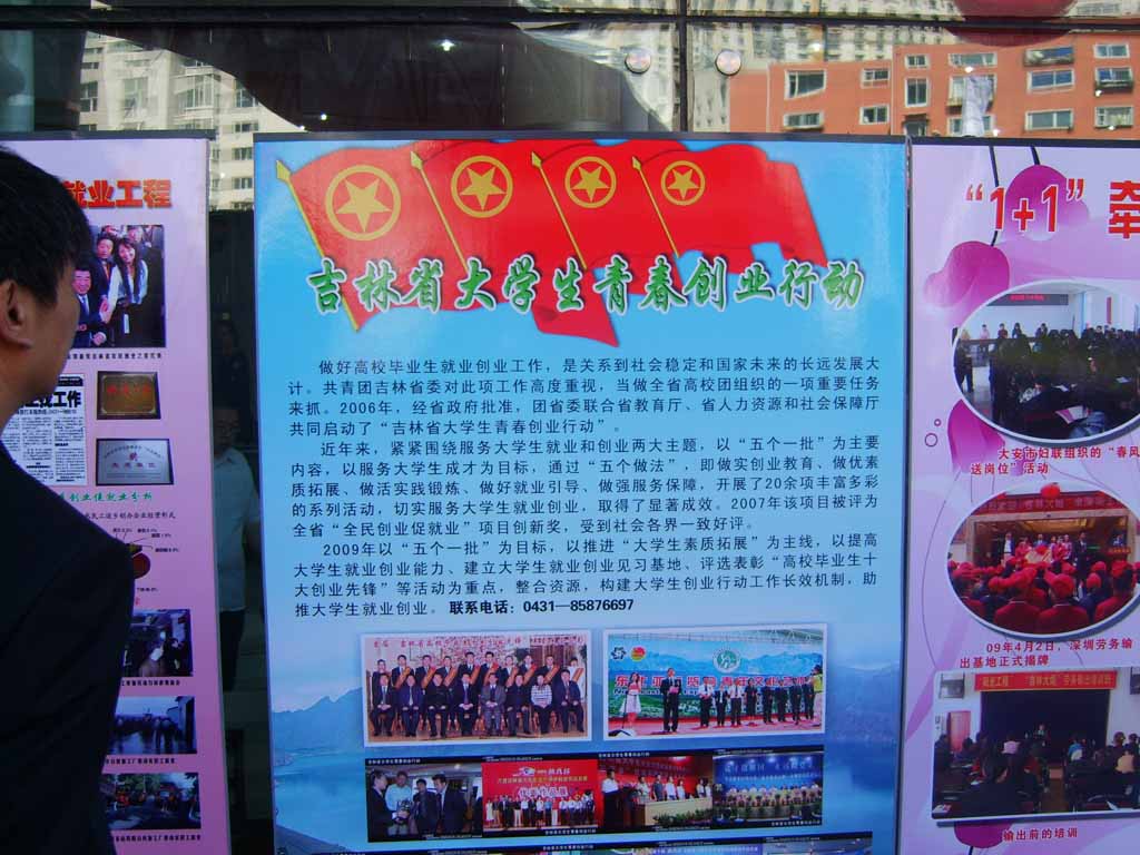 今年的5月13日是我省第四个“全民创业促就业联动日”。为提早做好我系2010届毕业生就业工作,根据学院第11-12周学生工作例会精神,我系团组织了五名有志于创业的2010届毕业生于5月13日早来到吉林省人力资源市场(吉林省人力资源和社会保障厅),参加我省创业项目推介展示大会。