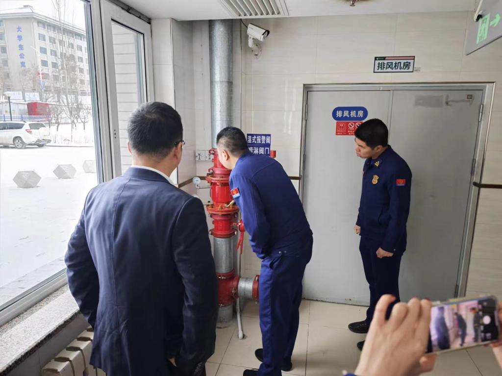 为进一步落实校园安全管理责任,深刻汲取寒假以来国内多起重大火灾事故教训,做好学校新学期各项安全工作,防范各类安全事故的发生,按照省教育厅相关文件要求。3月1日上午,学校主动联系属地消防部门,采取“干部+专家”的方式联合开展开学前安全大检查,后勤管理服务中心主任崔亮、安全保卫处副处长张强、消防科科长王弘屿、永吉县消防救援大队副大队长宰守法带领后勤管理服务中心、安全保卫处和永吉县消防救援大队相关工作人员组成联合检查组对全校安全重点区域开展了开学前安全大检查。