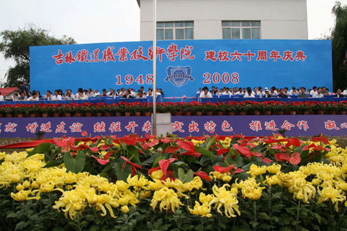 金秋九月硕果飘香,吉铁职院群英荟萃。9月6日上午,吉林铁道职业技术学院在学院体育场召开建校60年庆祝大会。 在半个多世纪的历程中,学院始终在铁道部、沈阳铁路局及铁路企业各单位的呵护下成长起来,学院的建设和发展得到了吉林省委省政府以及吉林省教育厅领导的亲切关怀和大力支持。学院的六十年,是充满艰辛、充满坎坷、充满拼搏、充满胜利的六十年。一代代的铁院人用青春书写了六十年风雨历程,六十年继往开来,六十年欢歌笑语。吉林铁道职业技术学院,是无数教职工挥洒汗水、奉献青春、将自己的前途与民族的前途紧紧相连的纽带;是众多铁院儿女呕心沥血、鞠躬尽瘁、把自己的命运与国家的命运环环相扣的平台。一批批风华正茂的青年学子,勤奋好学,刻苦钻研,把自己铸造成了社会的栋梁之材。 大会由学院党委书记于俊秋教授主持。 吉林省教育厅副厅长刘勇兵,吉林市人民政府副市长杨金顺、朱淳,沈阳铁路局纪委书记张恩礼,乌鲁木齐铁路局纪委书记李树森等省、 市、铁路局、兄弟院校、校企合作单位的领导出席了大会。 大会在国歌声中开始。 吉林省教育厅副厅长刘勇兵、吉林市人民政府副市长杨金顺、沈阳铁路局纪委书记张恩礼代表上级领导在大会上讲话。 来宾单位代表吉林农业科技学院党委书记周建华教授、校友代表原中铁南车公司总会计师朱守礼、教师代表王明轩、在校学生代表铁道运输系戚轩在大会上讲话。 吉林铁道职业技术学院院长张炳南教授在会上做了讲话。 此次校庆活动,得到了上级领导和社会各界的高度重视和关心,省市领导、上级教育主管部门、有关高等院校纷纷发来贺信、贺电。 此时此刻,铁院人特别怀念创建学校的先贤们,尤其感谢那些毕生为学院发展费尽心血的先辈们,他们的优良传统和精神已经融入新一代铁院人的血液,这些宝贵的精神财富必将转化成无穷的力量,推动后来者去造就无愧于时代的伟大事业。 吉林铁道职业技术学院已经走过了60年的光辉历程,回故过去,踏遍青山人未老;面向未来,而今迈步从头越。站在历史和未来的交接点上,我们思绪万千,百感交集,面对新的机遇和挑战,铁院人一定不辜负各级领导的期望和社会各界的厚爱,以建校60周年为新的起点,不断开创吉林铁道职业技术学院新的美好的明天!