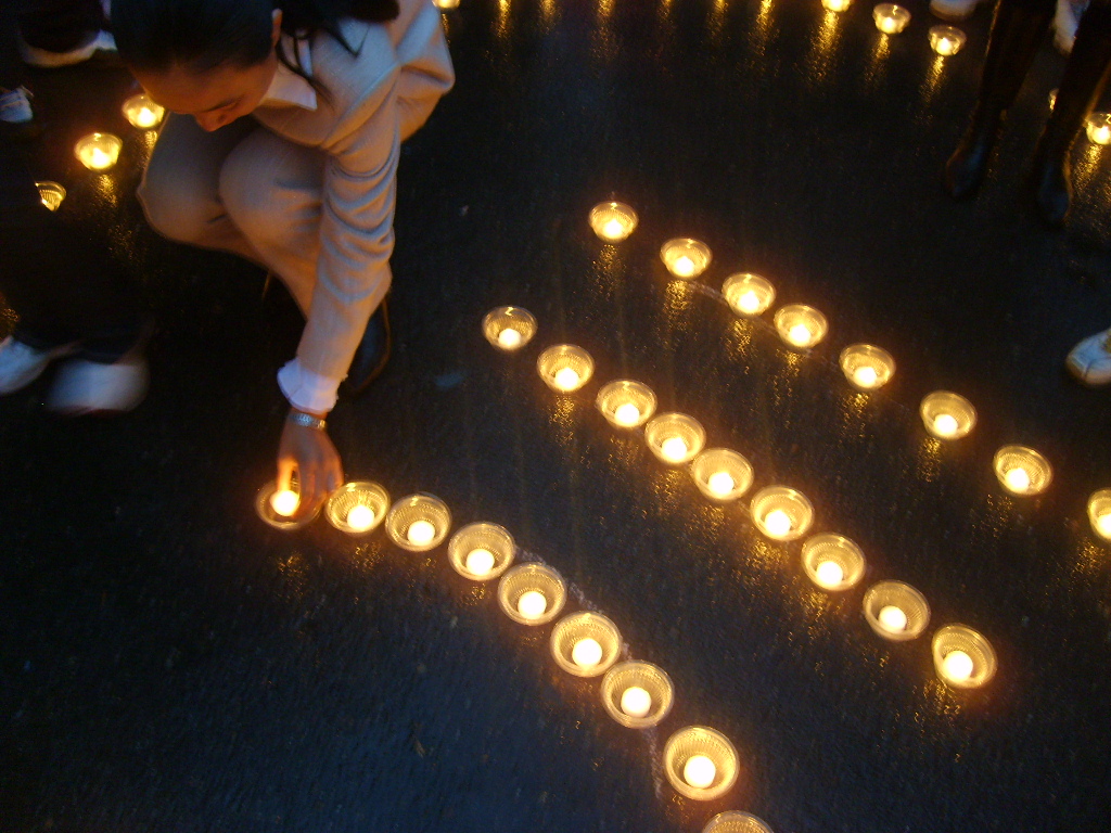 整个活动一直伴着小雨,但全系师生的热情都很高涨。没有一人因下雨而退缩。全系师生在“血肉相连、同此国殇;抗震救灾、众志成城”的横幅上签字留名。每个人都细心地呵护着燃烧的蜡烛,蜡烛一次一次的被风雨熄灭,但又一次一次的重新点燃!师生齐声高喊:“中国加油,汶川加油,汶川挺住!”每人手捧爱心烛光来到松花江畔放流爱心祈福灯。从学校到江边的路上雨一直淅沥的下着!在过马路的时候,同学们手捧祈福灯。这一刻,道路上行驶的汽车都停下了并打开双闪灯,为手捧祈福灯的同学们开辟了一条光明大道,也为灾区的人民照亮了生的希望与美好的明天!