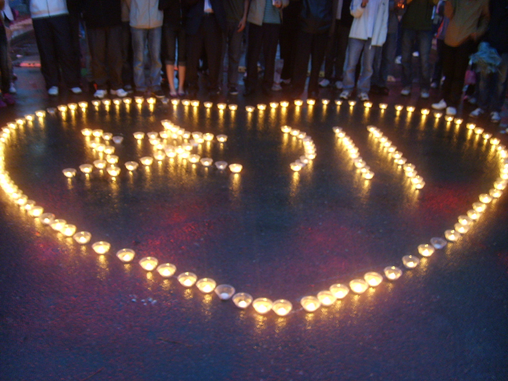 5月22日晚,在吉林铁道职业技术学院东校区门前,由一根根蜡烛组成了一个大大的“心”形,这带有爱心的烛光在绵绵细雨中摇曳着。这是电气工程系组织的为“四川地震灾区人民烛光祈福”活动,以最真挚的感情献上了对灾区人民的爱心和祝福。