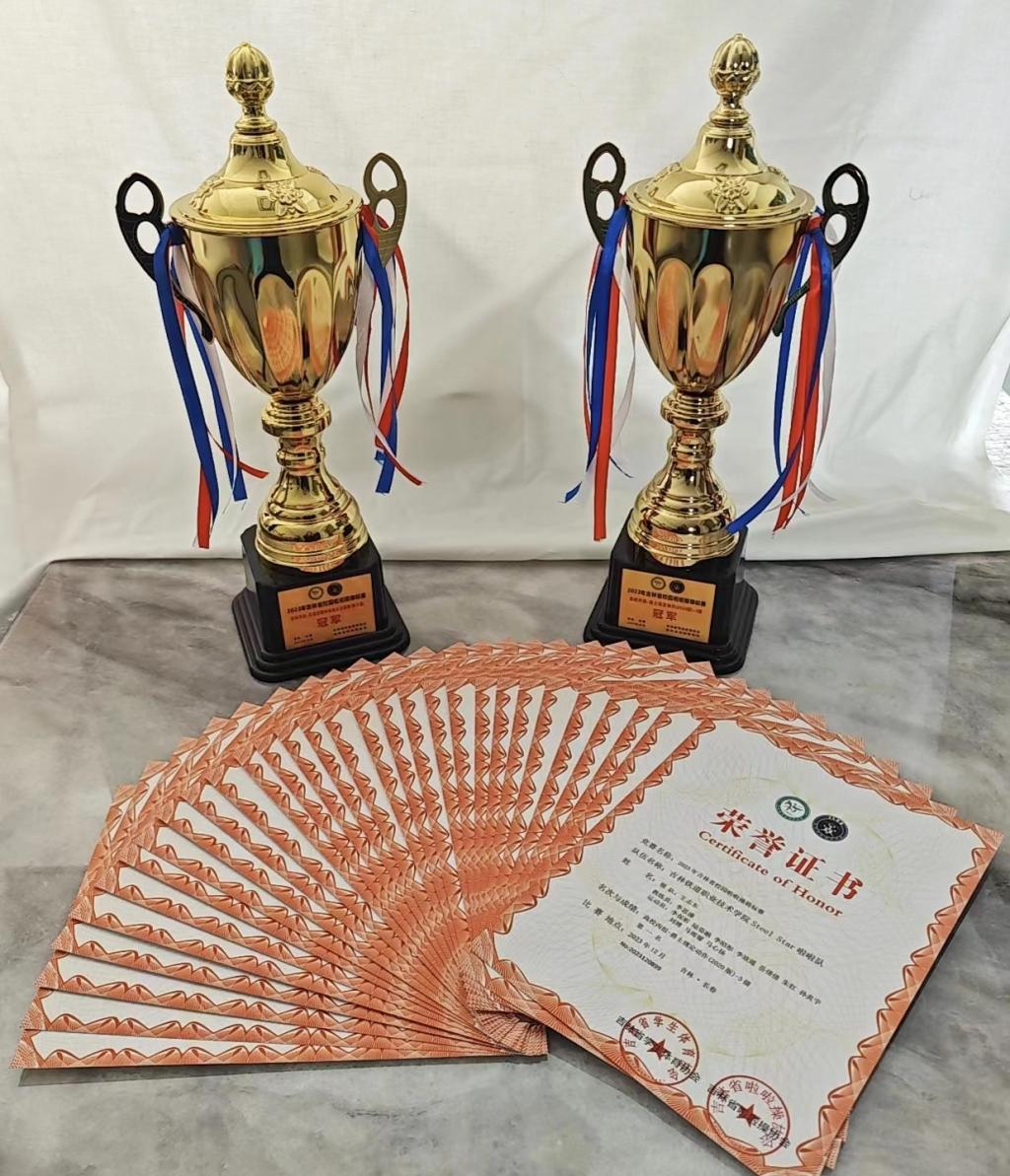 赛场上,我校啦啦操队运动健儿们洋溢着青春的朝气,以整齐划一的动作、默契的配合、独特的编创,展现了吉铁院人朝气蓬勃的青春力量,赢得了观众的阵阵掌声。经过激烈角逐,最终我校啦啦操队在本次大赛中取得了“爵士规定动作”、“花球校园啦啦操示范套路”两项冠军。