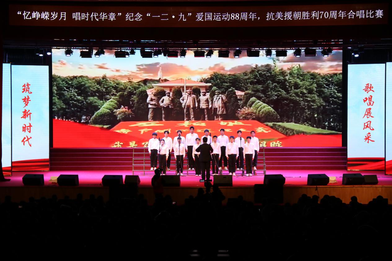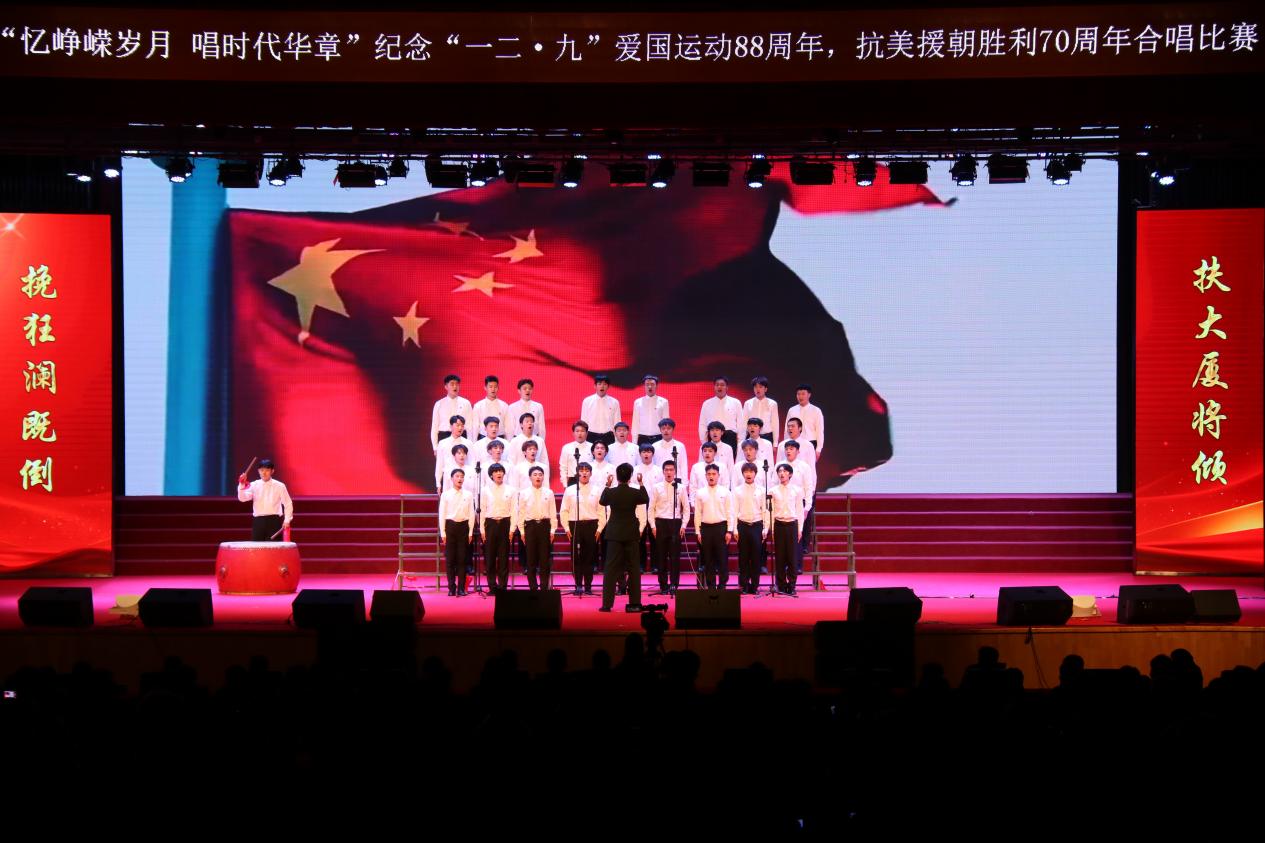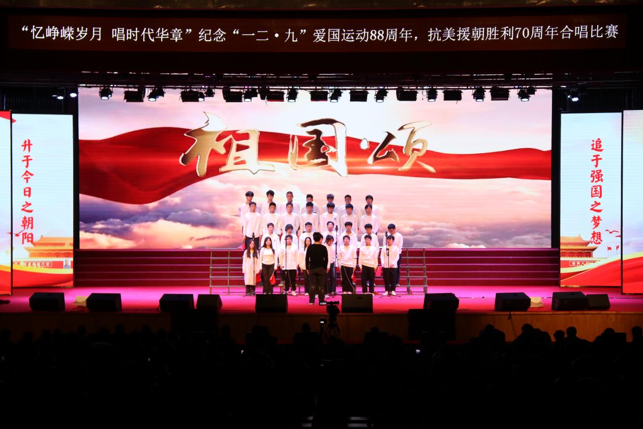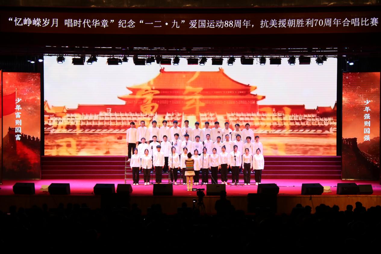 为深入学习宣传贯彻习近平新时代中国特色社会主义思想,引导广大青年学生厚植爱国主义情怀、坚定理想信念,12月8日,由学校团委主办,东北亚高铁学院承办的“忆峥嵘岁月,唱时代华章”---纪念“一二·九”爱国运动88周年,抗美援朝胜利70周年合唱比赛在学校大学生活动中心举办。学校纪委书记、监察专员孙艳玲,党委委员、宣传部部长盛继前、学生工作部部长周环宇、校团委副书记孙旭,以及各学院党总支副书记和团委书记出席本次活动。学校团委老师曲担娃、美育教研室老师赵若男、劳动教育教研室老师闫晶明担任本次比赛评委。2023级全体同学参加了本次活动,现场掌声不绝、欢声雷动。