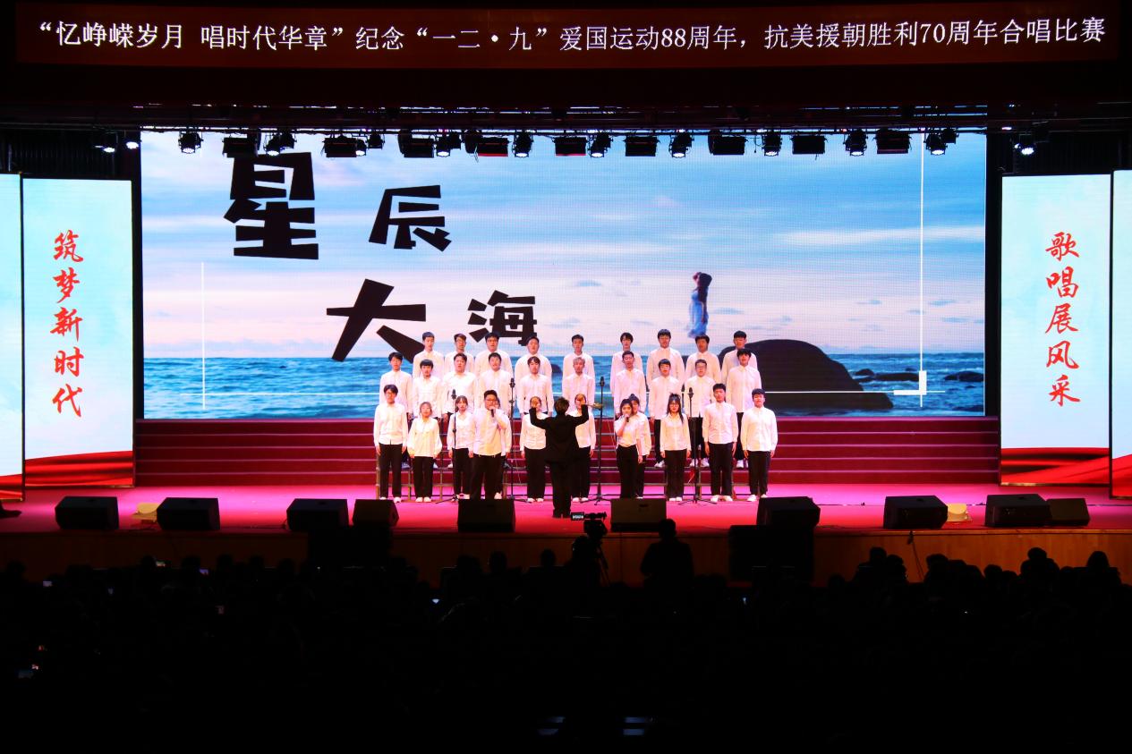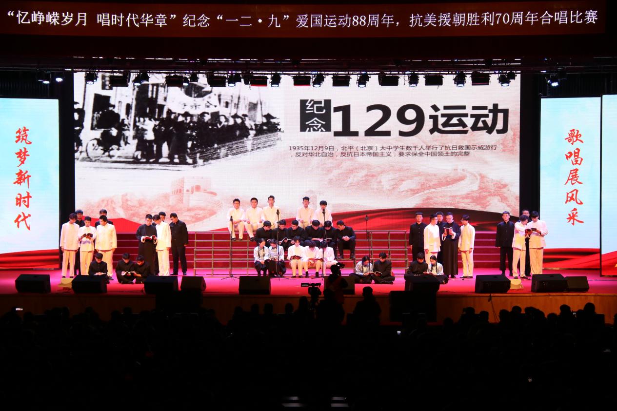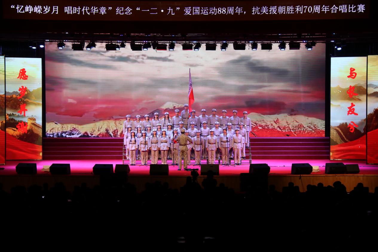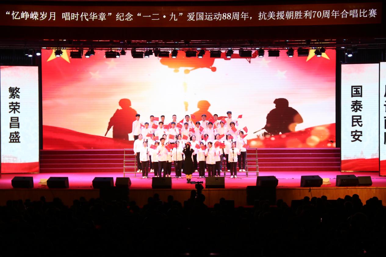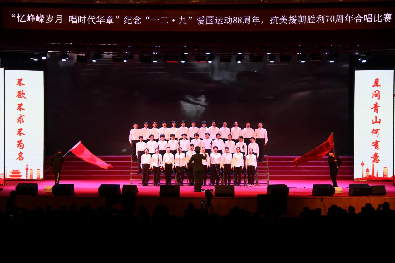 为深入学习宣传贯彻习近平新时代中国特色社会主义思想,引导广大青年学生厚植爱国主义情怀、坚定理想信念,12月8日,由学校团委主办,东北亚高铁学院承办的“忆峥嵘岁月,唱时代华章”---纪念“一二·九”爱国运动88周年,抗美援朝胜利70周年合唱比赛在学校大学生活动中心举办。学校纪委书记、监察专员孙艳玲,党委委员、宣传部部长盛继前、学生工作部部长周环宇、校团委副书记孙旭,以及各学院党总支副书记和团委书记出席本次活动。学校团委老师曲担娃、美育教研室老师赵若男、劳动教育教研室老师闫晶明担任本次比赛评委。2023级全体同学参加了本次活动,现场掌声不绝、欢声雷动。