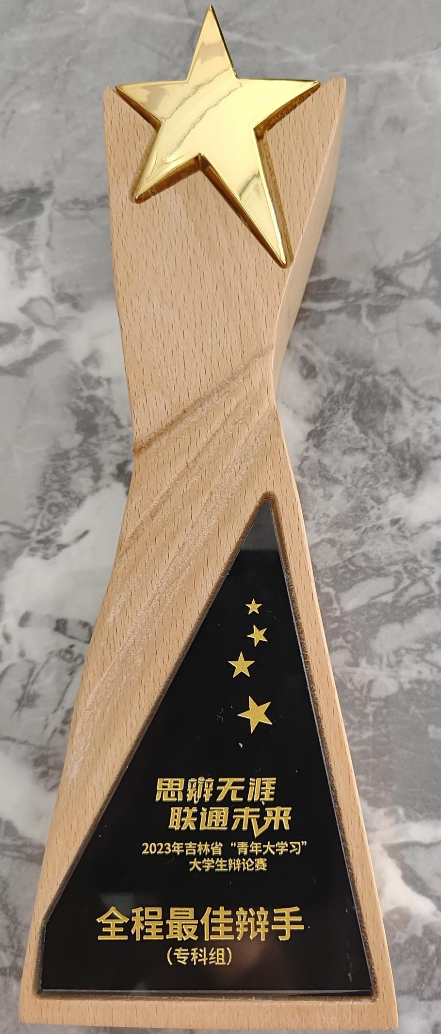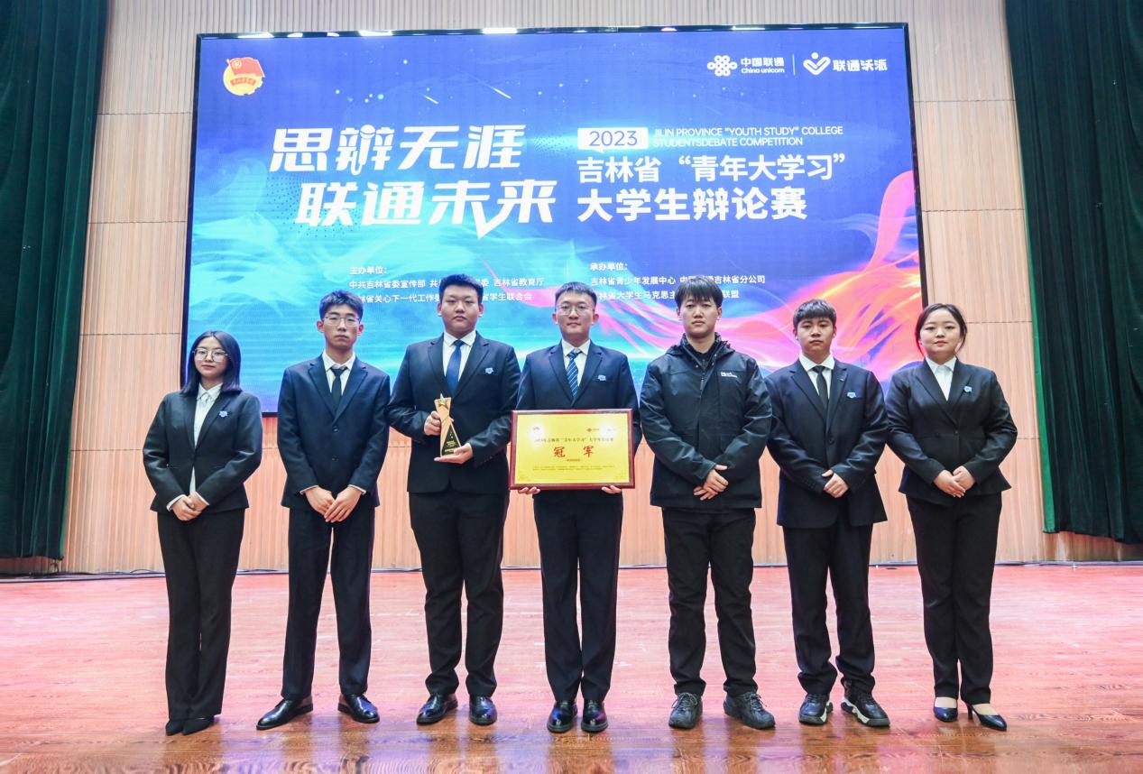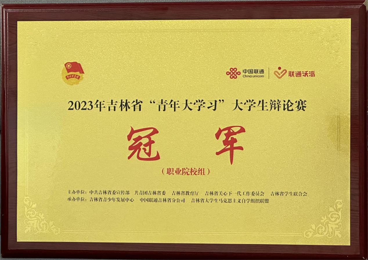 近日,由中共吉林省委宣传部、共青团吉林省委、吉林省教育厅、省学联、省关工委联合举办的2023年“青年大学习”大学生辩论赛圆满结束,12月8日在吉林建筑大学举办颁奖仪式,我校党委副书记苏建国出席仪式。在学校党委领导和团委的大力支持下,我校辩论协会在指导教师王诗禹的带领下,参赛辩手一路过关斩将、四场连胜,在此项赛事上首次荣获吉林省“青年大学习”大学生辩论赛职业院校组冠军,曹峻熙同学荣获全程最佳辩手荣誉称号。
