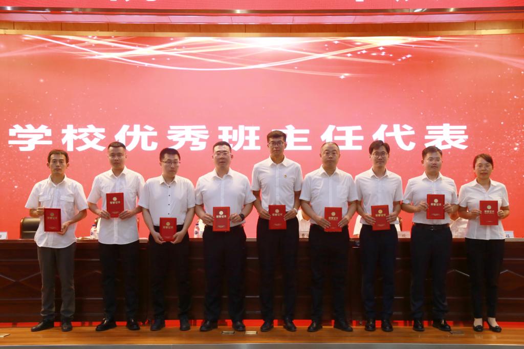 会上,曹炳志发表讲话。孙艳玲宣读学校高铁综合技术学院荣获2024年全国教育系统先进集体的通报。李欣宣读宣读表彰从教30周年教育工作者,表彰学校2023年度先进集体和先进个人,表彰学校2024年度“最美教师”,表彰学校2023-2024学年“三全育人”先进个人的决定。李原福宣读宣读表彰学校2023-2024学年“四有”好老师,表彰学校2024年教学能力比赛,表彰学校2023-2024学年课堂教学质量优秀奖、优秀教案,表彰学校2023-2024学年优秀辅导员、班主任的决定。学校领导为获奖集体和个人颁奖。学生代表,铁道机车运用与维护(中外合作办学)2310班王迪同学,教师代表,高铁综合技术学院马兴兴老师分别发言。