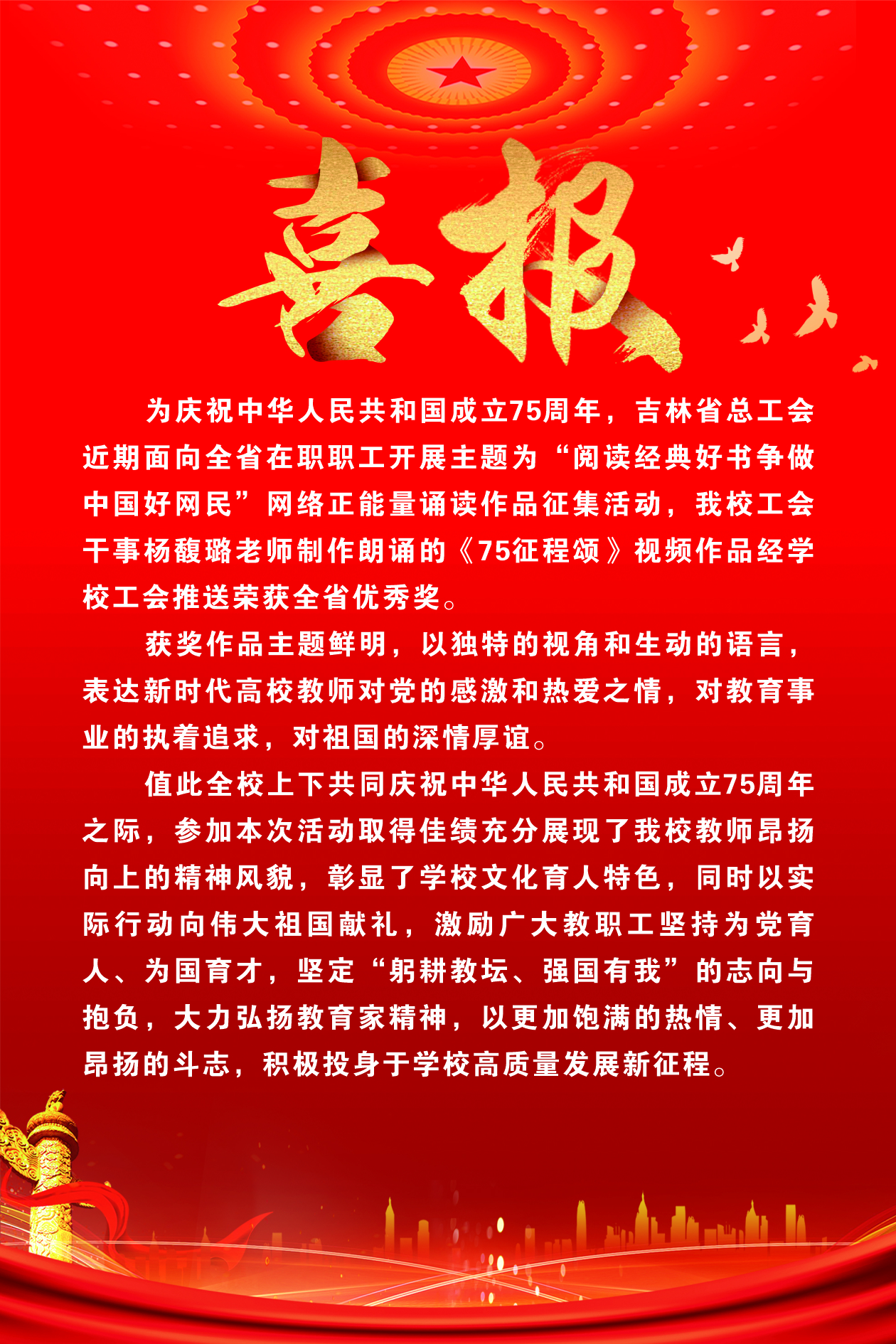 喜报:我校教师在“阅读经典好书争做中国好网民”吉林省职工网络正能量诵读作品征集活动中喜获佳绩