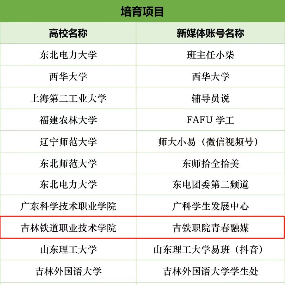 为深入贯彻落实习近平新时代中国特色社会主义思想,重点建设一批高校思政类新媒体账号,打造有传播力、影响力、引导力、公信力的网络新媒体平台,易班面向全国共建高校遴选新媒体账号及优质思政内容,并组织相关领域专家从内容建设基础、内容建设方案、学生工作团队、预期成果等方面综合进行评审,经过高校申报、线上答辩、专家评审等环节,最终10所高校的项目被评选为支持项目,75所高校的项目被评选为培育项目,学校团属媒体平台【吉铁职院青春融媒】立项成功。