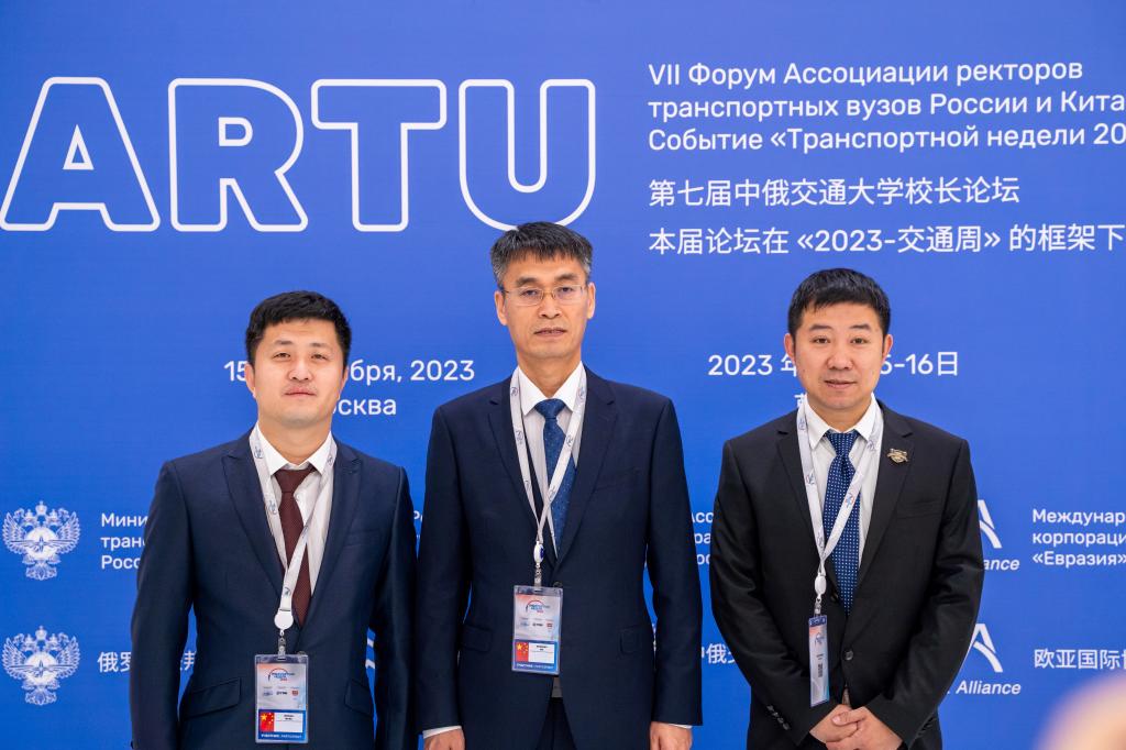 第七届中俄交通大学校长论坛于2023年11月15日至16日,在俄罗斯交通大学举办,历时两天,同期召开“2023 年交通周”框架下的“俄罗斯交通展”。本次论坛由俄罗斯联邦交通部、中俄交通大学校长联盟主办,俄罗斯交通大学和欧亚国际协会承办。受主办方邀请,学校副校长马卫强、东北亚高铁学院王伟楠、俄语教师柳博禹参加了本次论坛。