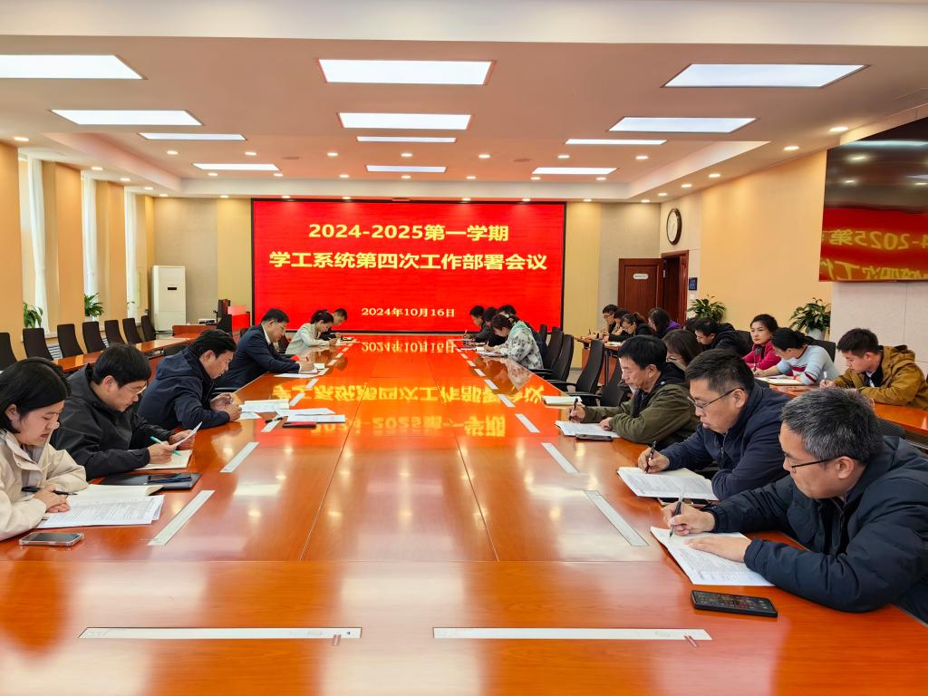 2024年10月16日下午,学校2024-2025学年第一学期第四次学生工作会议在第二会议室召开。学校党委副书记苏建国,学生工作处、校团委、心理健康教学研究院全体成员以及各学院党总支书记、党总支副书记、学办主任参加会议。会议由学生工作处处长周环宇主持。