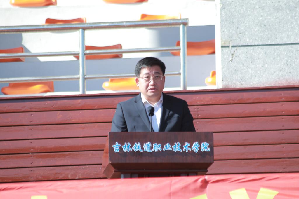 他希望同学们,以积极的态度投入到比赛中,大力弘扬良好的体育道德风尚,遵守比赛规则,增强团结合作意识,在共同感受体育运动魅力和激烈竞争乐趣的同时,建立起深厚的同学友谊。希望同学们,牢记健康第一的原则,充分认识到身体好是在校学习期间体育达标的基础,也是学习好的保障,更是将来工作好的根本,吸引更多同学积极投入到参加体育锻炼的行列,通过体育运动强身健体、磨练意志、振奋精神全面发展,早日成长为“六铁一全”吉铁院特质学生,成长为堪当强国建设、民族复兴大任的栋梁之才。