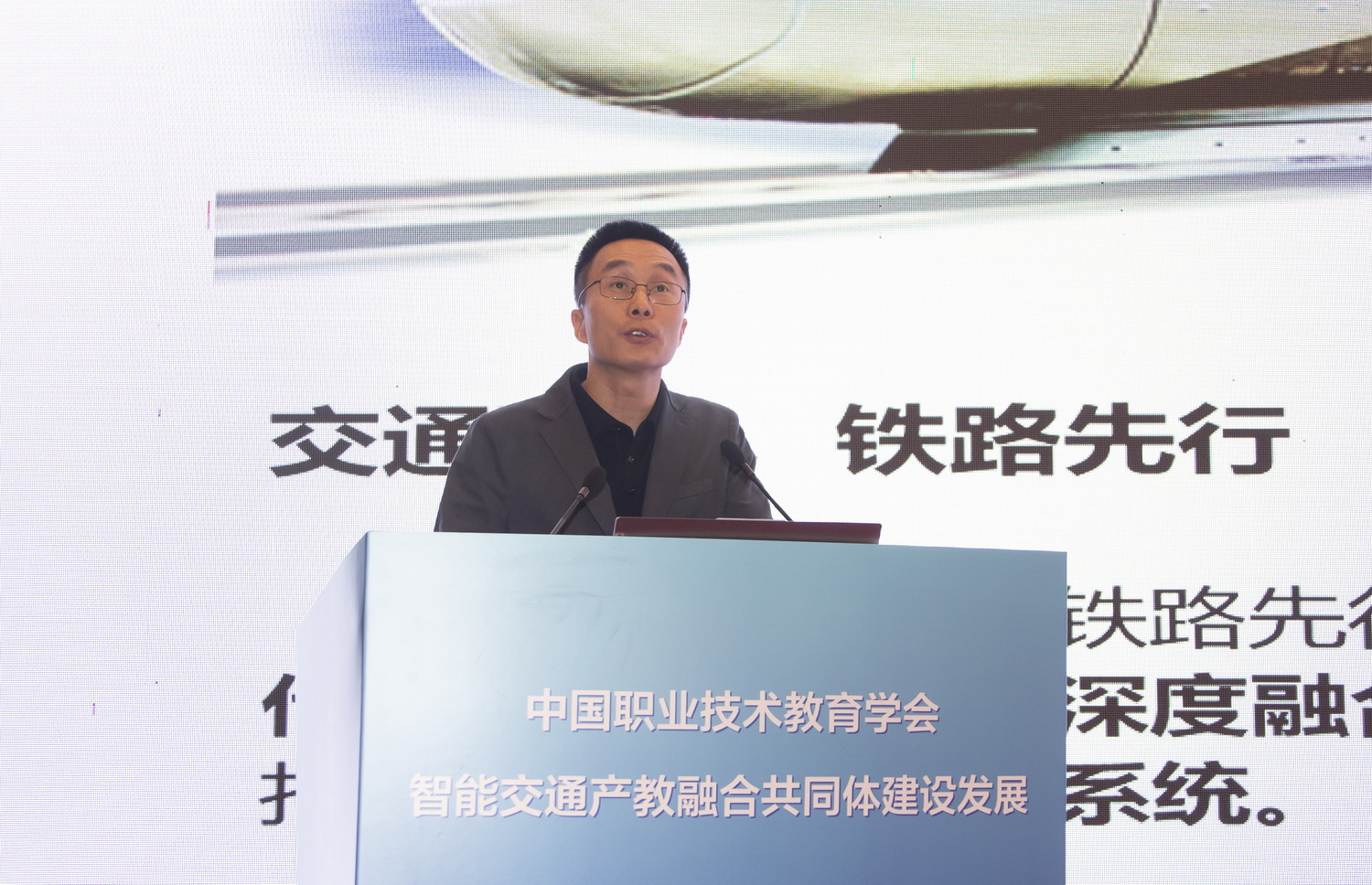陈煜平在致辞中指出,交通运输是国民经济中战略性、引领性、基础性产业,建设交通强国是我国建成社会主义现代化强国的先行领域和战略支撑,是社会主义现代化的重要组成部分。近年来,吉林铁道职业技术学院在迈向交通强国的新征程中,抢抓机遇,主动作为,走出了一条高质量发展的产教融合道路。学校是吉林省唯一以铁道类专业为主的省属公办全日制高等职业院校,是国家“双高计划”建设单位、国家优质校、国家首批1+X证书制度试点单位、国家现代学徒制试点单位、全国就业50强学校、全国黄炎培职业教育奖优秀学校,被评为吉林省唯一的全国“一带一路”教育行动部省品牌培育建设单位。以本次大会为契机,学校必将发挥好智能轨道交通专委会职能,加快构建智能交通领域职业教育产教深度融合发展格局,进一步匹配行业需求和教育供给,推进现代职业教育体系建设改革,携手合作,创新共赢。