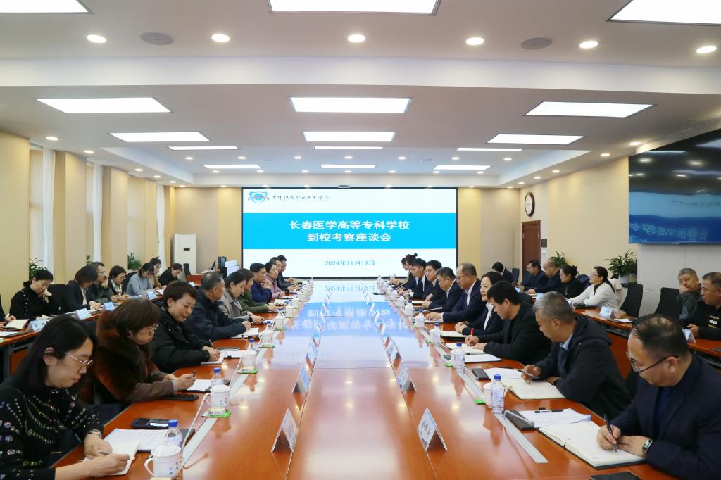 11月19日,长春医学高等专科学校党委书记杜影,党委副书记、校长袁兆新一行到我校考察调研,我校党委书记陈煜平,党委副书记、校长曹炳志、学校领导班子全体成员以及相关部门负责人陪同调研。