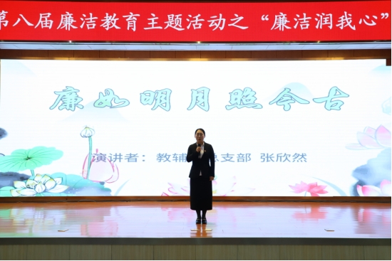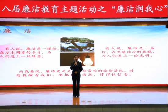 为深入学习贯彻习近平总书记关于加强新时代廉洁文化建设的重要论述,加强学校新时代廉洁文化建设,不断夯实学校“纪委防护”工程,助力“复兴号”党建品牌建设,积极引导广大干部、师生树立正确的廉洁观念,形成廉荣贪耻的校园氛围。11月22日,学校在图书馆报告厅举办“廉洁润我心”第三届讲述廉洁故事比赛。党委书记陈煜平,党委副书记苏建国,纪委书记、监察专员孙艳玲,副校长马卫强、李原福,党委委员、纪委委员、专兼职纪检监察干部、副科级以上干部、教师代表、学生代表共同观看了比赛。