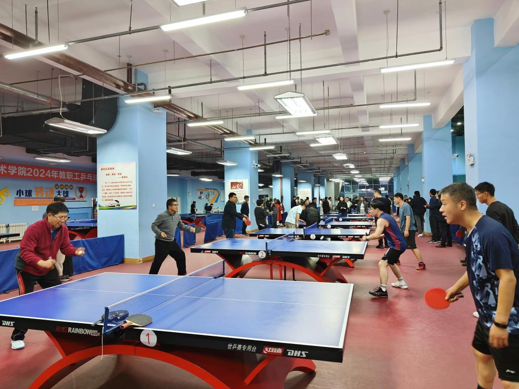 在深入学习贯彻全国教育大会精神之际,为增强教职工凝聚力和向心力,激励广大教职工以更加饱满的精神状态投入到学校发展新征程中,丰富教职工业余文体生活,促进交流与合作。11月22日,由学校工会主办,体育教学研究院承办的“追‘球’梦想,奋力‘乒’博”——2024年学校教职工乒乓球比赛在大学生活动中心落下帷幕,此次比赛吸引了全校13个分工会160余名教职工积极参与,展现了教职工在乒乓球运动上的活力与风采。