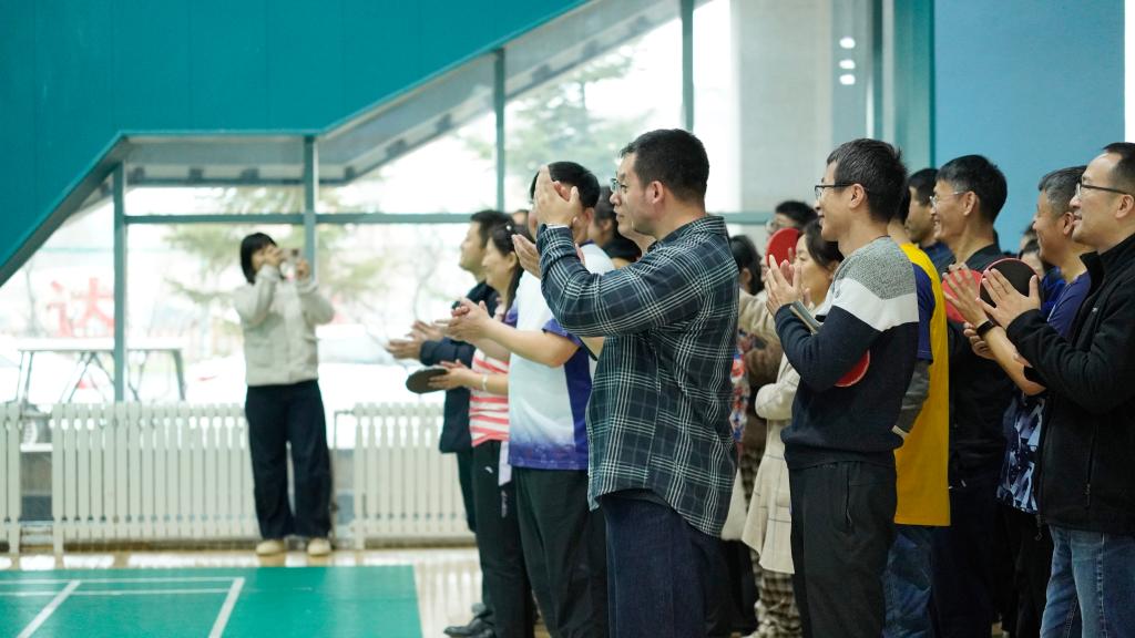 比赛伊始,学校工会精心准备了快板表演,为参赛选手们加油助力。赛场上,参赛教师们一改平日的温文尔雅,化身活力满满的运动员。发球、接球、扣杀,每一个动作都干脆利落,精湛的球技令人赞叹。在男子团体比赛中,男教职工们攻势凌厉、防守巧妙,充分展示了力量与技巧的完美结合。在女子团体比赛中,女教职工们巾帼不让须眉,以其细腻的球路和沉稳的心态赢得场边观众阵阵喝彩。在决赛中,各参赛队伍展开了更加激烈的争夺,比分交替上升,精彩场面不断,场边观众们的加油助威声此起彼伏。