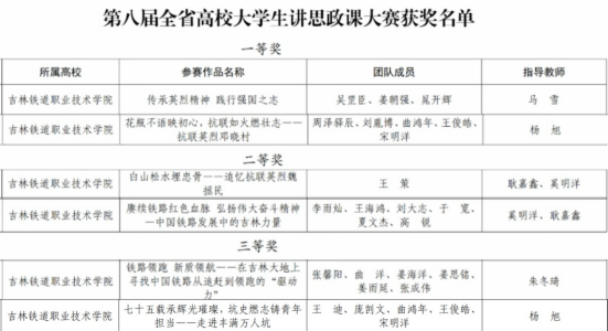 近日,我校师生在省级各项思政类比赛中捷报频传、连创佳绩,在全省同类院校中位居前列,影响力持续扩大。