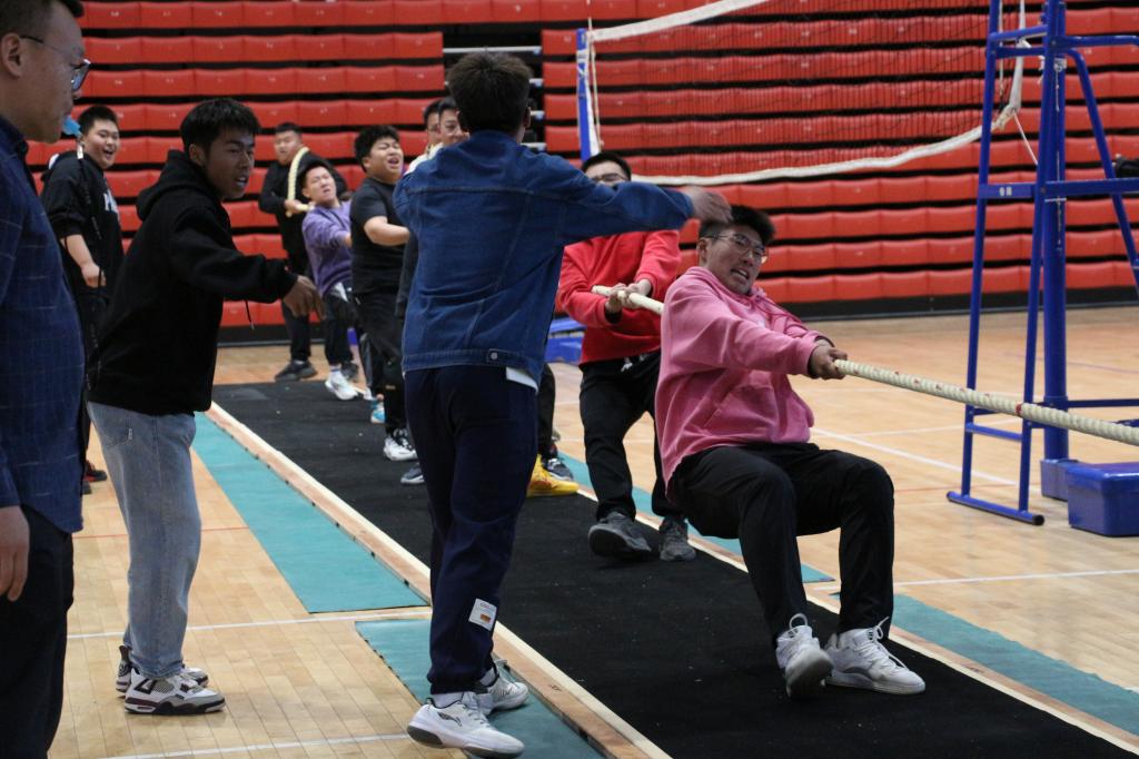齐心合力,团结一致的拔河比赛现场