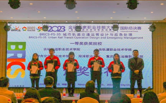 2023年11月12日,2023金砖国家职业技能大赛“城市轨道交通运营设计与应急处理”赛项国际总决赛(单人赛)在吉林市闭幕,经过激烈角逐,吉林铁道职业技术学院学生董舒畅在45支竞赛队伍中脱颖而出,以总成绩第一名的佳绩勇夺桂冠,摘取城市轨道交通运营设计与应急处理赛项国际总决赛金牌奖项,学校荣获大赛组织突出贡献奖。