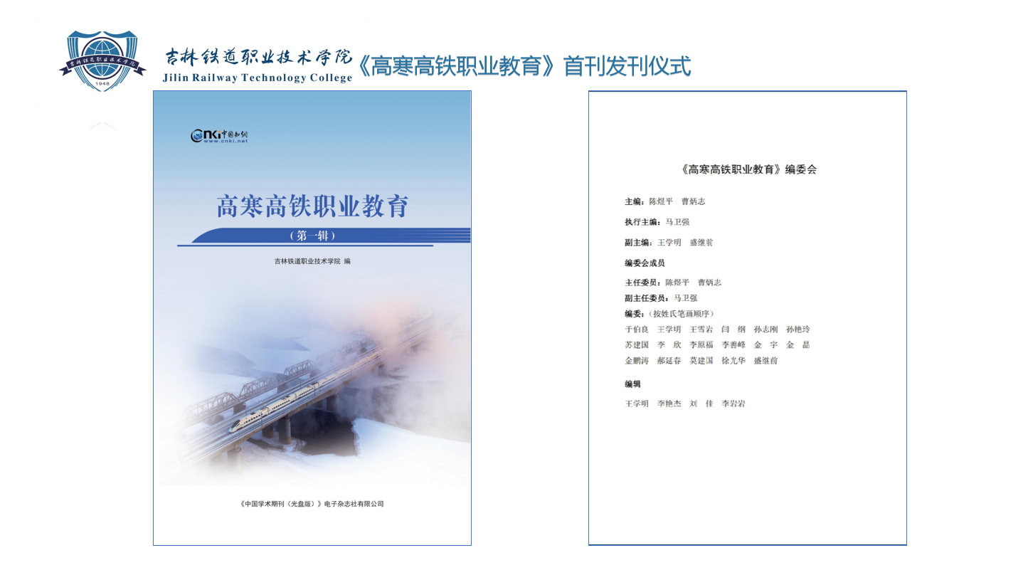 最后,马卫强强调,此次发刊仪式的召开,代表着《高寒高铁职业教育》辑刊的正式出版发行。《高寒高铁职业教育》辑刊的未来发展,必将助力学校持续提高教科研水平和学术影响、助力丰富“吉铁院”精神内涵、助力学校建成国内一流、国际知名的职业技术大学。马卫强要求全校教职工坚守初心,秉持严谨务实的态度,紧跟职业教育与高寒高铁领域的最新动态,开展深入研究、撰写高质量文章;编辑部要不断优化办刊模式、提升刊物质量、提高服务质量,努力把《高寒高铁职业教育》打造成铁道行业和职业教育领域的品牌刊。