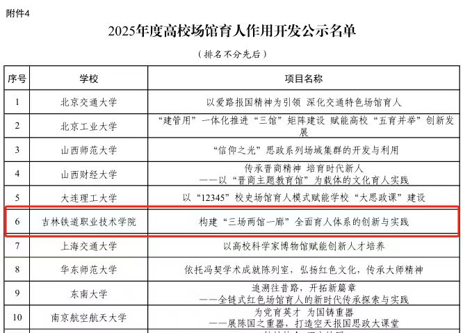 近年来,学校坚持用习近平新时代中国特色社会主义思想铸魂育人,深入推进“复兴号”党建品牌建设,落实立德树人根本任务,着力建设高质量思想政治工作体系,不断加强思想政治工作各领域的理论创新和实践探索,及时总结凝练思想政治工作经验,打造高寒高铁“六铁一全”特色人才培养新高地。下一步,学校将持续深化思政精品项目培育、品牌示范引领,积极构建具有广泛影响力和持续发展力的特色育人模式,不断开创思想政治工作新局面。