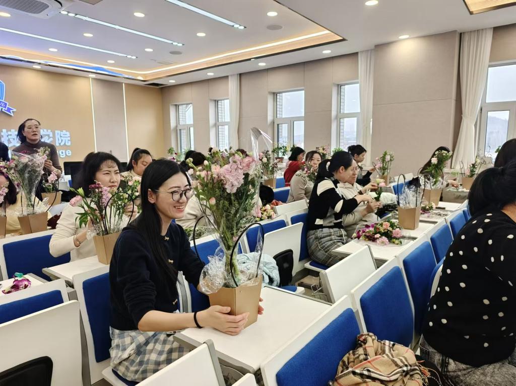 3月6日14时,学校办公楼第三会议室化为“春日花房”,50余名女教职工齐聚一堂,在专业花艺师指导下开展沉浸式艺术插花活动,在花香与艺术的氛围中感受节日关怀,共庆属于自己的美好时光。花艺师从花材选择、色彩搭配、造型技巧等方面展开教学,现场演示了单枝插花、花篮制作等基础技法。女教职工们手持剪刀、花泥,充分发挥想象力,将各式鲜花巧妙组合成一件件独一无二的作品,既端庄雅致,又兼具自由创作的灵动之美。最后,活动在欢声笑语中落下帷幕,女教职工们手捧鲜花感慨:“修剪掉繁杂枝叶的同时,也卸下了工作压力,这次活动不仅让我们学到了插花技艺,更感受到了艺术带来的治愈力量。”