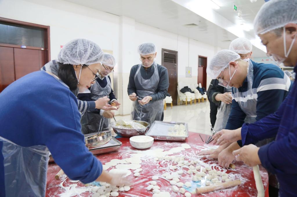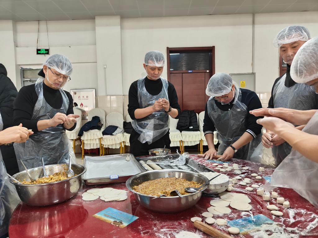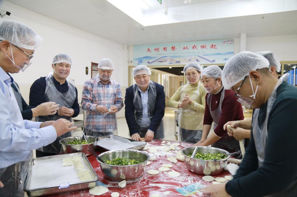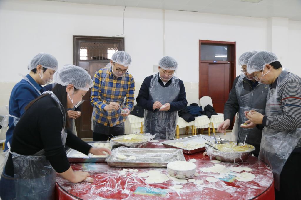 活动现场,学校后勤管理服务中心提前备好了所需的面团、馅料。五位男校级领导各自带领一组男教职工,纷纷系上围裙,迅速投入到包饺子活动中。揉面、揪团、擀皮、拌馅,每一个环节大家都积极参与,各显神通。有的教职工手法娴熟,包出的饺子精致饱满;有的虽是初次尝试,但热情高涨,在欢声笑语中享受着劳动的乐趣。