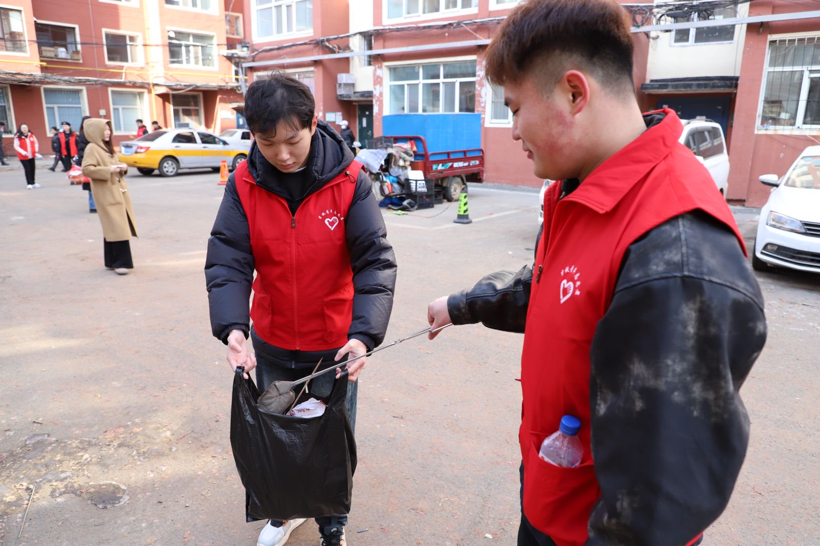 活动现场,普法宣讲团队成员向居民发放了宣传单,提前准备了台历等纪念礼品,全面普及法律常识,引导居民做知法、懂法、守法公民。爱心问诊团队在西山社区党群服务中心,联合我校校医院医生共同为居民们测量血压、血糖,普及健康知识,为广大人民群众送去健康与关怀。环境卫生团队成员在永吉县步行街附近小区内,手持铲刀、夹子、垃圾袋等工具,仔细铲除社区内电线杆、居民楼墙面的小广告,捡拾地面垃圾,为营造干净、文明的城市风貌添砖加瓦。