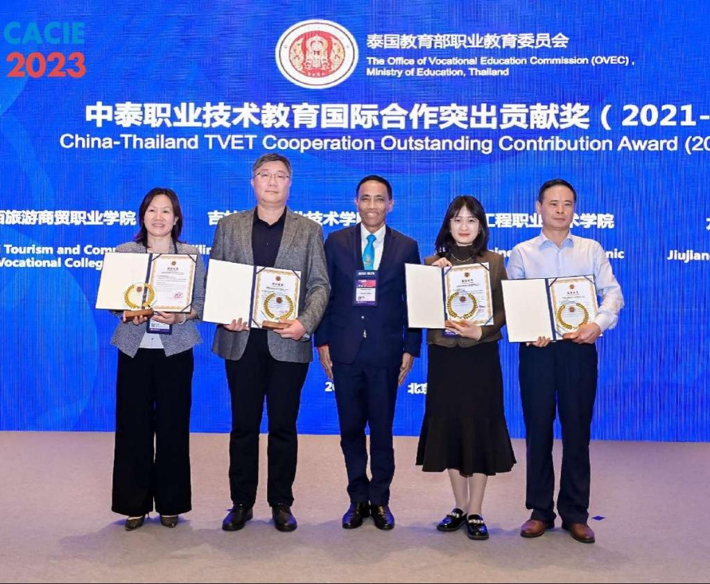 在此次年会分论坛“教育数字化背景下的国际产教合作论坛”上,我校获评由泰国教育部职业教育委员会颁发的“2021-2023中泰巴教育国际合作突出贡献奖”。