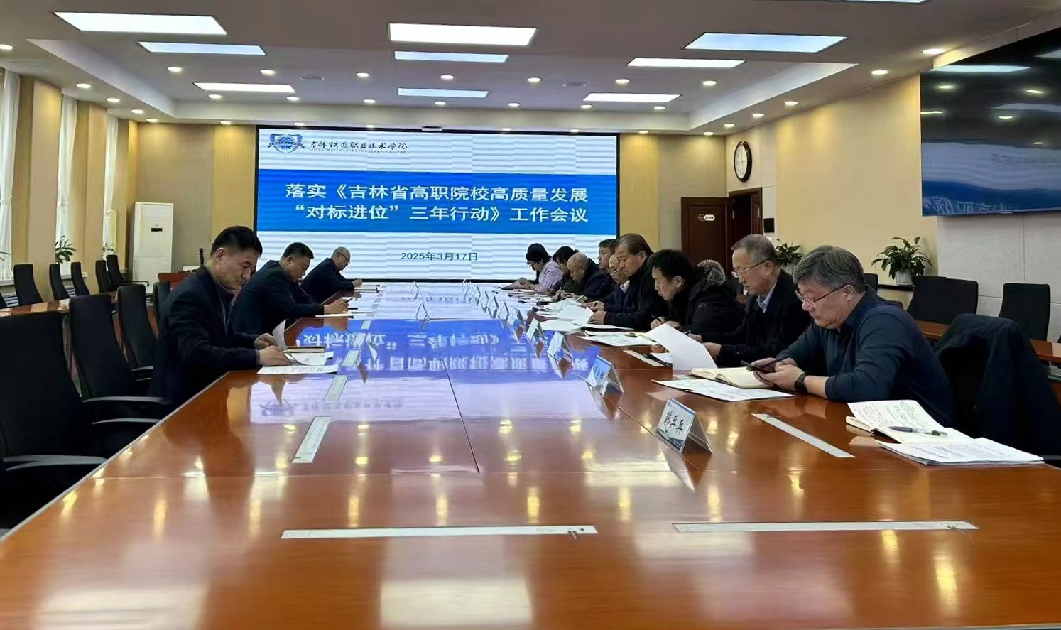 为全面落实吉林省教育厅《关于开展吉林省高职院校高质量发展“对标进位”三年行动的通知》(吉教职成〔2025〕1 号)的文件精神,推进学校高质量发展“对标进位”三年行动,3月17日,学校召开了专项工作会议。教务处、人事处、科研处、招生就业处、国际交流中心、产教融合研究院、培训与继续教育学院、数字教育研究院、职普融通研究院、创新创业学院、职业教育与产业发展研究院负责人参加,副校长李欣出席并讲话。