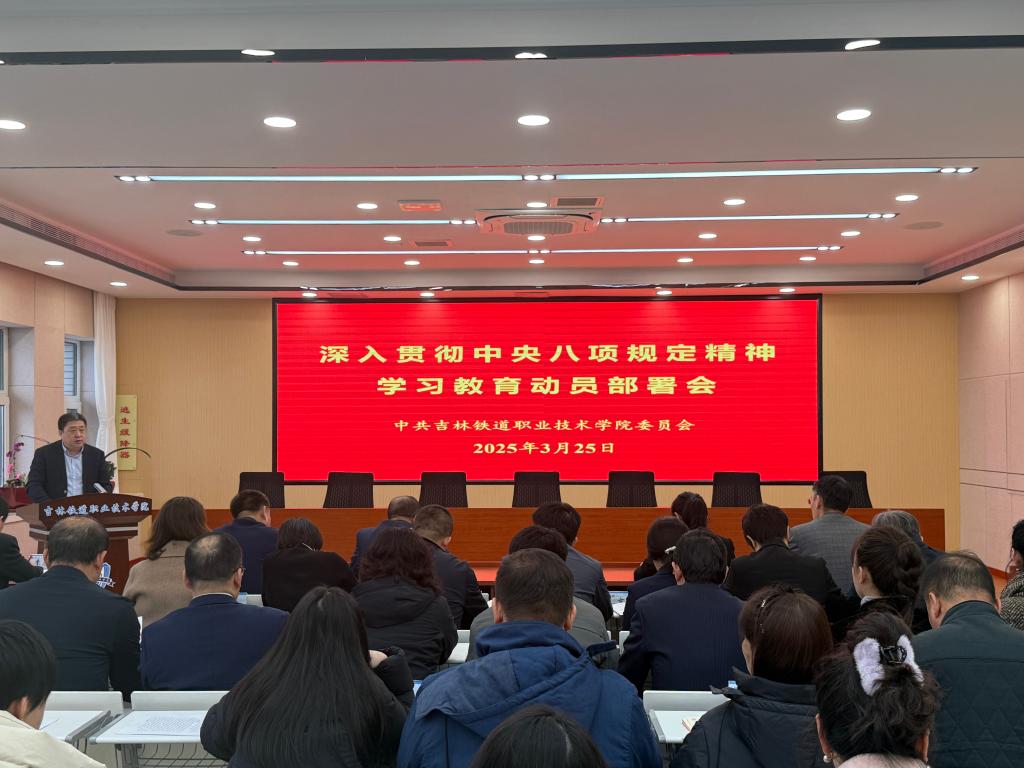 3月25日,学校召开党委会会议和深入贯彻中央八项规定精神学习教育启动部署会议,认真学习习近平总书记关于深入贯彻中央八项规定精神学习教育的重要讲话和重要指示精神,全面落实中央部署和省委要求,紧密结合实际研究部署全校学习教育工作,审议通过《中共吉林铁道职业技术学院委员会关于在全校开展深入贯彻中央八项规定精神学习教育的实施方案》,持之以恒推进全面从严治党。学校党委书记陈煜平主持会议并讲话,学校纪委书记、监察专员孙艳玲做深入贯彻中央八项规定精神专题学习辅导。