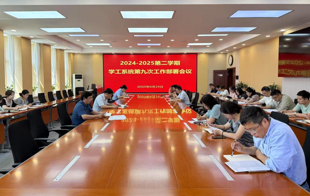 6月24日,学校2024-2025学年第二学期第九次学生工作会议在第二会议室召开。学校党委副书记苏建国,学生工作处、校团委、心理健康教学研究院成员以及各学院党总支书记、党总支副书记、学办主任参加会议。会议由学生工作处处长周环宇主持。