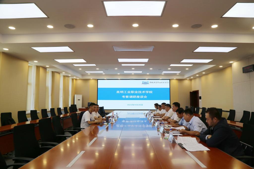 9月20日下午,昆明工业职业技术学院党委副书记、校长刘伟,马克思主义学院院长、通识与素质教育学院院长、党支部书记雷洪梅,学工部部长、学生处处长、武装部长张辅陈一行3人到我校考察调研。我校党委书记陈煜平,党委副书记苏建国,党委委员、副校长李欣,相关部门负责人参加座谈会,会议由李欣主持。
