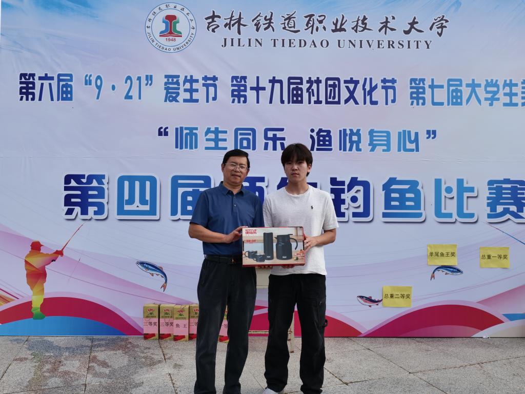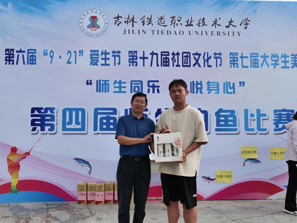 经过两个小时的激烈角逐,裁判依据单尾重量及鱼获总重量进行排名。教师组中,城市轨道交通学院李佰玲钓到单尾最重“鱼王”,按鱼获总重量,安全保卫处尚佳伟获得第一名,东北亚高铁学院王伟楠、东北亚高铁学院孙奇获得并列第二名,美育劳育教学研究院周敏、铁道机车车辆学院孔亮获得并列第三名。学生组中,东北亚高铁学院潘韬宇钓到单尾最重“鱼王”,按鱼获总重量,东北亚高铁学院潘韬宇获得第一名,铁道工程学院张嘉文获得第二名,铁道工程学院赵宏伟获得第三名。学校工会主席李惠娟和学生工作处处长周环宇分别为获奖者颁发了奖品,祝福师生事业学业皆顺利,师生情谊永流淌。